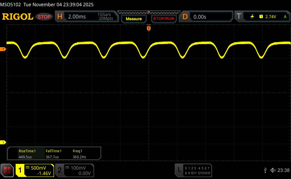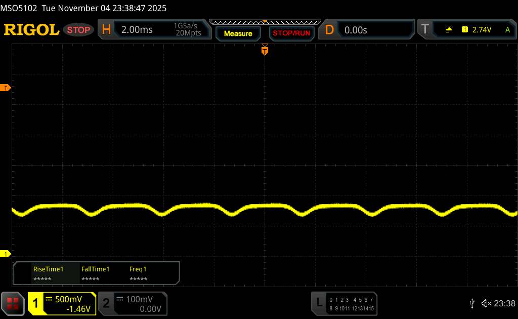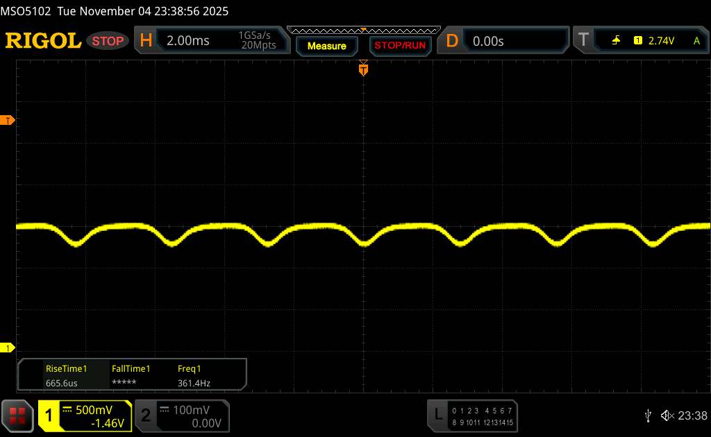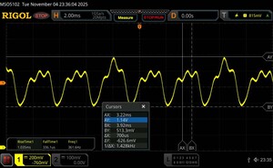 (+) | a csúcsok lineárisak (1.4% delta az előző frekvenciához képest)