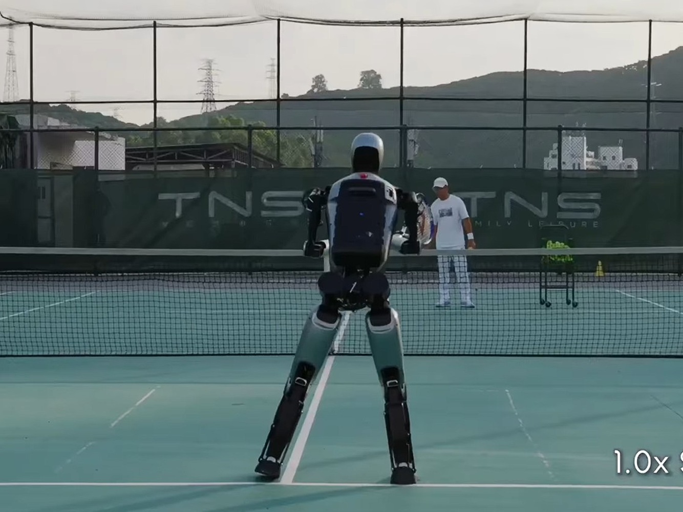 A humanoid az Ubtech Robotics által gyártott Walker S2. A videón látható, ahogy a robot teniszütőt tart a kezében, és hárítja az ütéseket, amelyek feltehetően a pálya másik felén lévő emberi játékosról érkeznek.