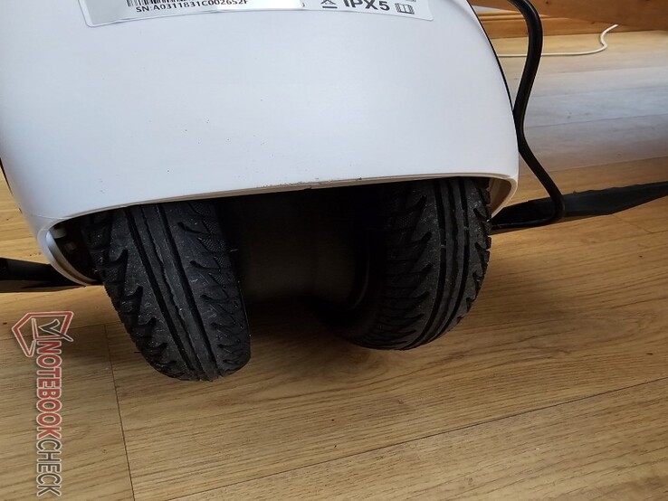 Másrészt a kettős kerekek nem úgy tűnik, hogy segítenének a járműnek a beltéri padlózaton vagy betonon kívüli terepen, hogy őszinte legyek: teljesen alkalmatlannak tűnik kavicsos vagy füves terepre, nem utolsósorban azért, mert a 14 colos gumik felfújhatóak és hajlamosak beleakadni a dolgokba.