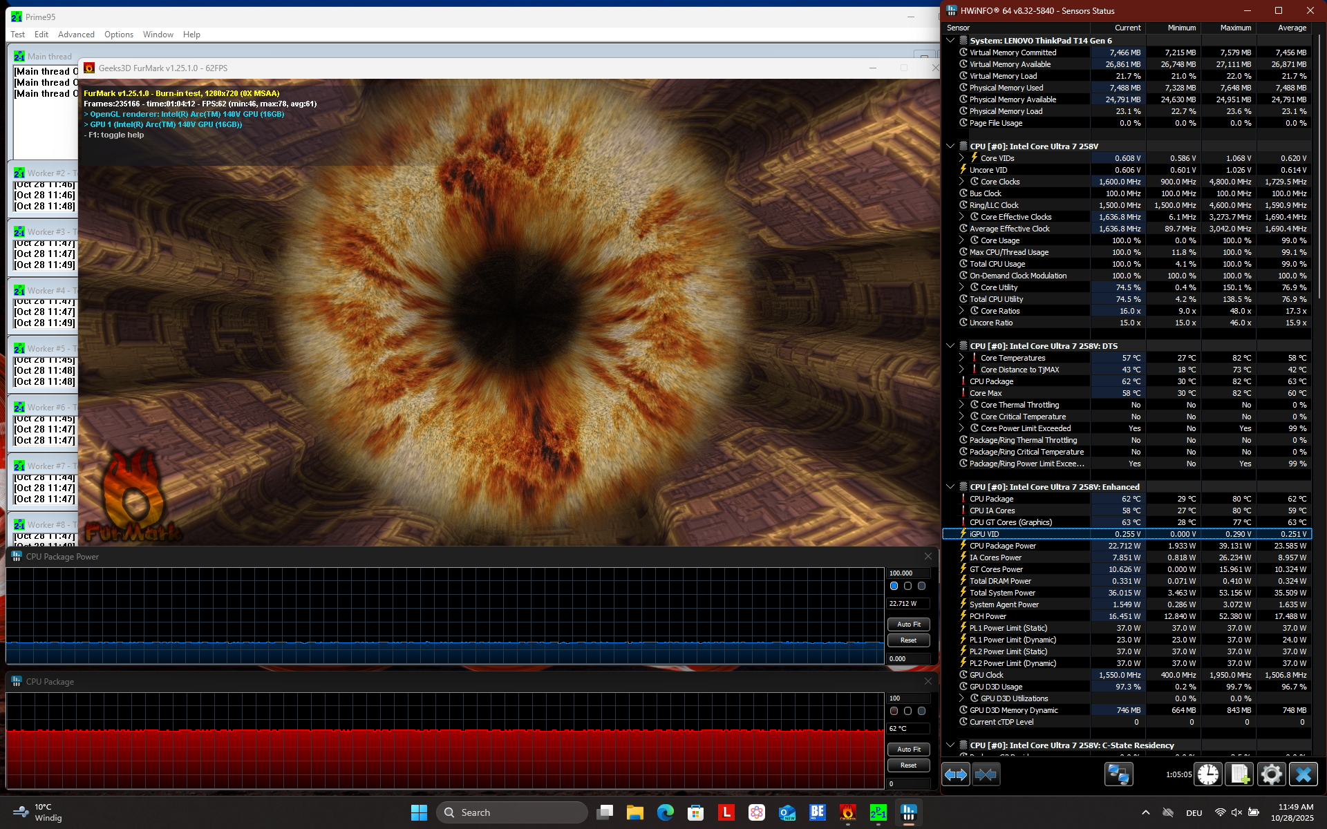 A stressztesztben a Lenovo ThinkPad T14 G6 Intel mindenféle fojtogatás nélkül tartja a teljesítményét.