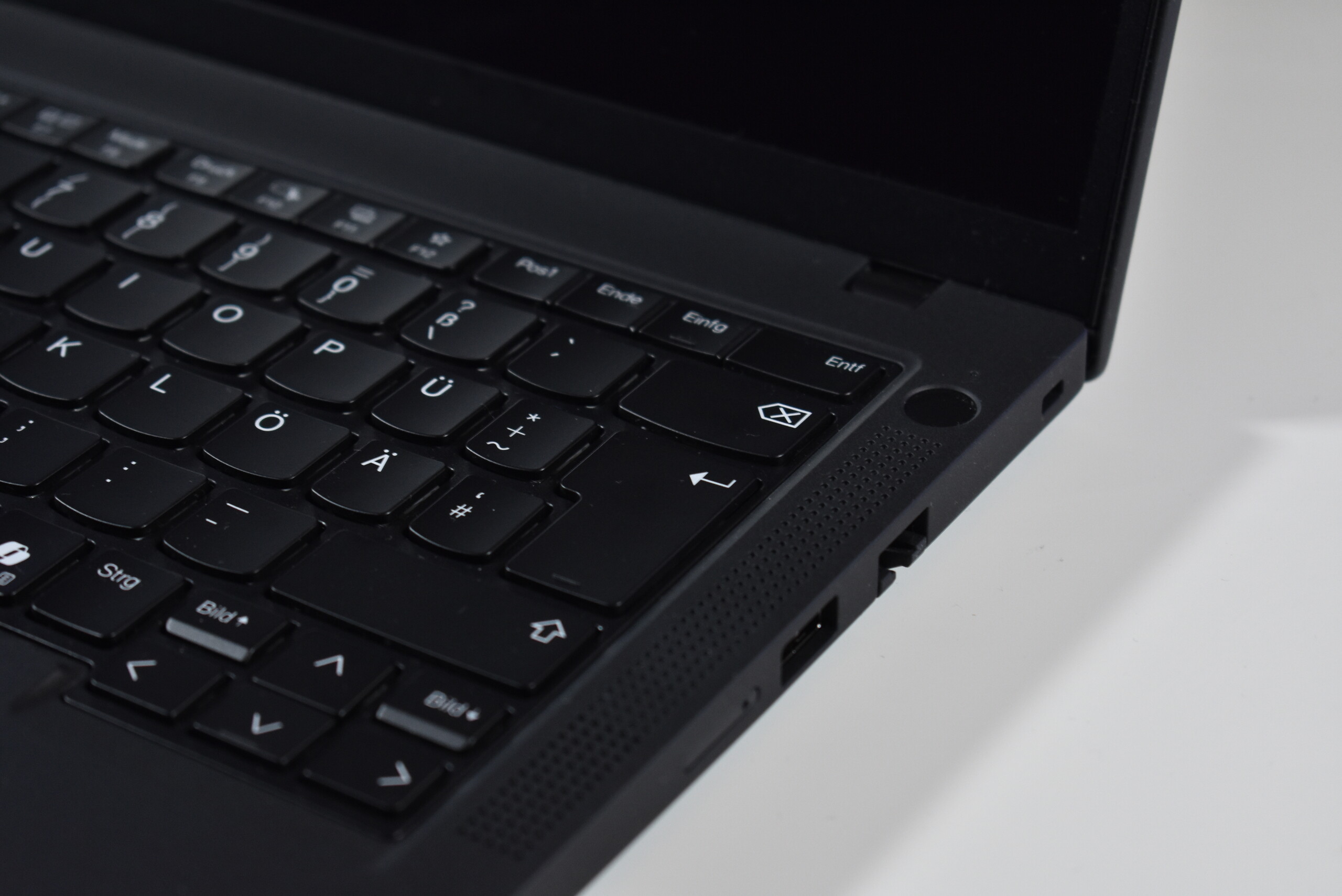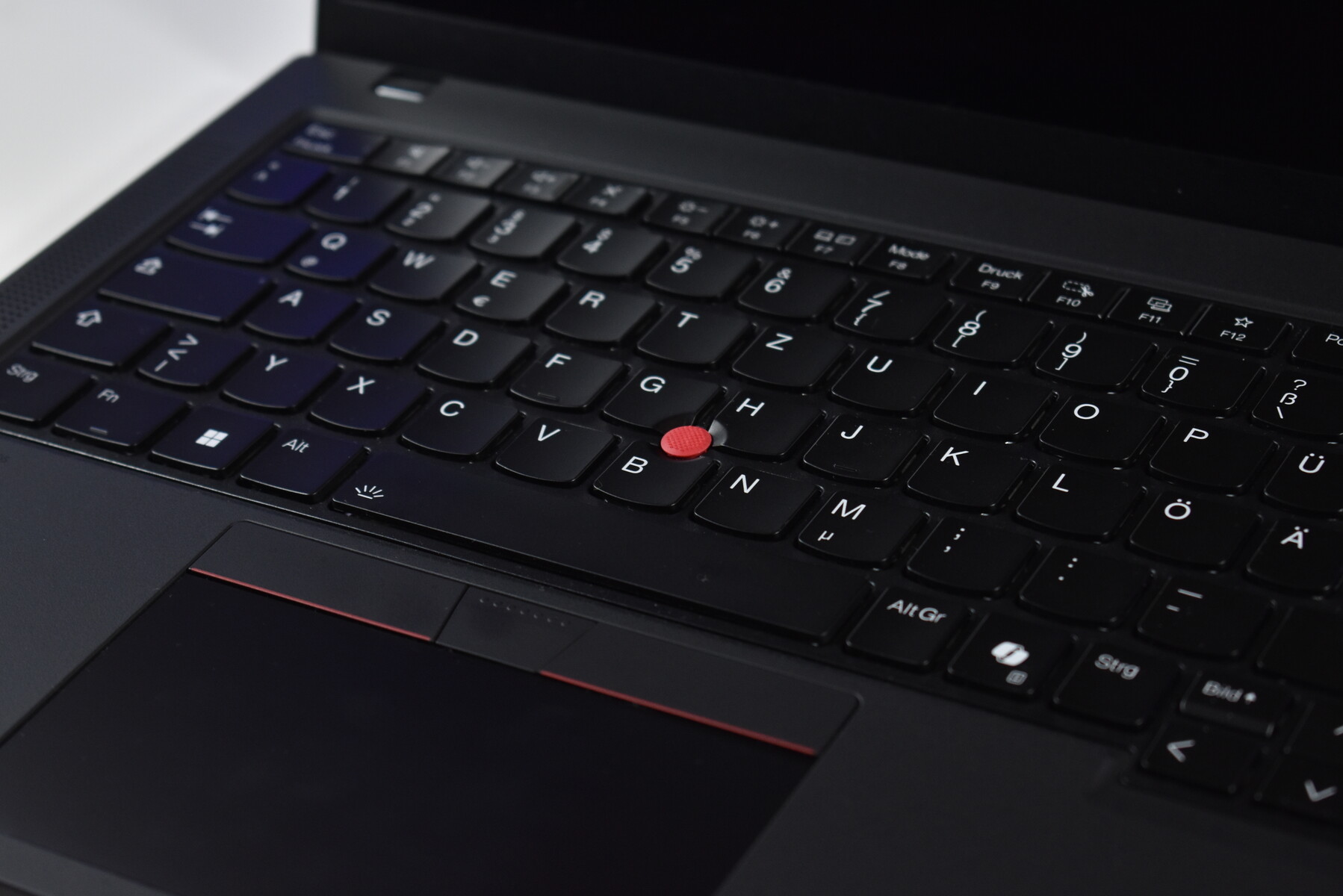 Ne szórakozz a jóval: A Lenovo ThinkPad T14 Gen 6 billentyűzete változatlan marad. A lekerekített, 1,5 mm-es úttal rendelkező Chiclet billentyűk nagyon kényelmes gépelési élményt nyújtanak, így a hosszú szövegek - mint például ez az áttekintés - gépelése is élvezetes. A billentyűzetkiosztás a piac egyik legjobbja, szépen elhelyezett nyílbillentyűkkel és csoportosított F billentyűkkel. Ezenkívül a billentyűzet kétfokozatú, fehér LED-es háttérvilágítással rendelkezik, így a sötétben történő gépelés is kényelmes.