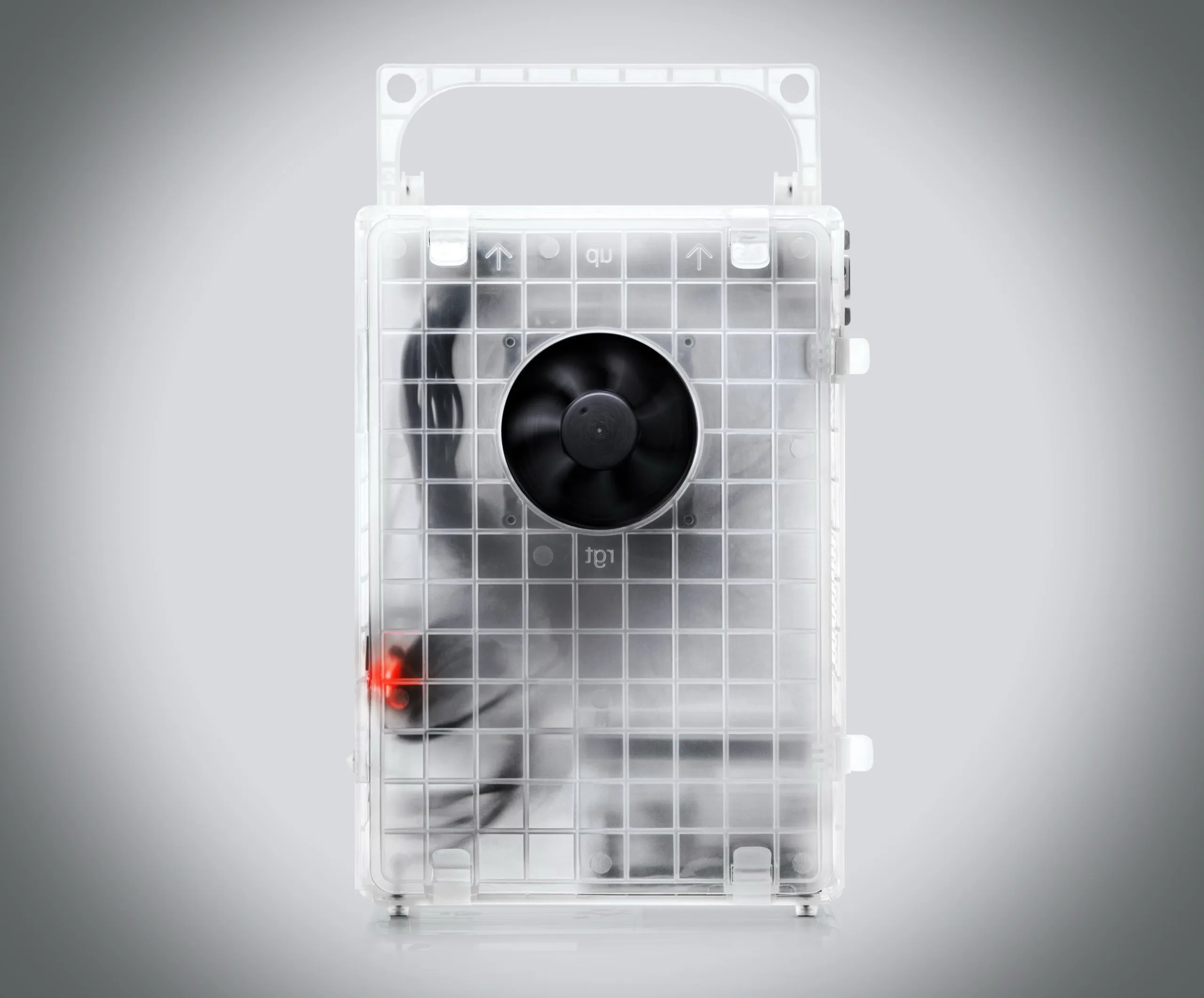 Az összeszereléshez nincs szükség szerszámokra vagy csavarokra. A kialakítás szinte teljesen megegyezik a jelenleg 99 €/$99/£99-ért kapható Computer-1 tokkal https://teenage.engineering/store/computer-1-orange. A kissé átlátszó műanyag nemcsak szokatlan megjelenést kölcsönöz az újabb toknak, hanem lényegesen könnyebb is, mint az acél és alumínium tokok. A viszonylag kompakt tok azonban csak kisebb alkatrészekkel kompatibilis.