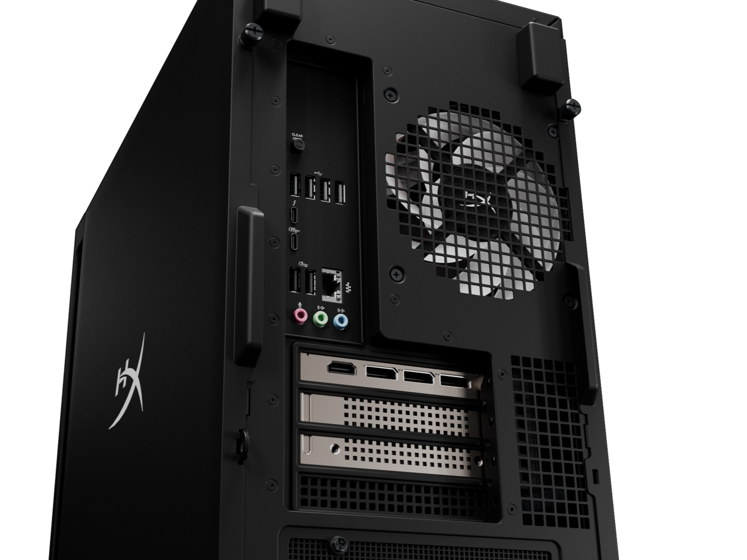 Sajnos az Omen 35L a dobozból kivéve nem konfigurálható SATA HDD-vel. Választható azonban akár 2 TB-os PCIe Gen 5 SSD és 2 TB-os PCIe Gen4 SSD is. A HP 120 mm-es ventilátorokkal tartja hűvösen a rendszert: kettő az elülső, egy a hátsó és kettő a felső részen. És igen, van RGB.