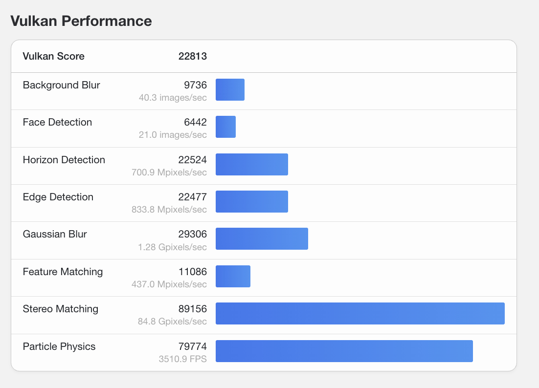Sajnos a Geekbench nem határozza meg, hogy hány Arc Xe3 maggal rendelkezik ez az iGPU. Ennek ellenére a Geekbench 6.5.0 Vulkan tesztben elért 22 813-as pontszáma a Geekbench 6.5.0 Vulkan Radeon 840M és annak 4 számítási egységével (CU). Lehetséges, hogy ez ugyanaz az iGPU, amely a Core Ultra 5 336H és Core Ultra 5 338H modellekben is megtalálható, nem pedig a 10 magos megfelelőikben, mint például a Core Ultra 5 336H és Core Ultra 5 338H modellekben Arc B360 vagy Arc B370.