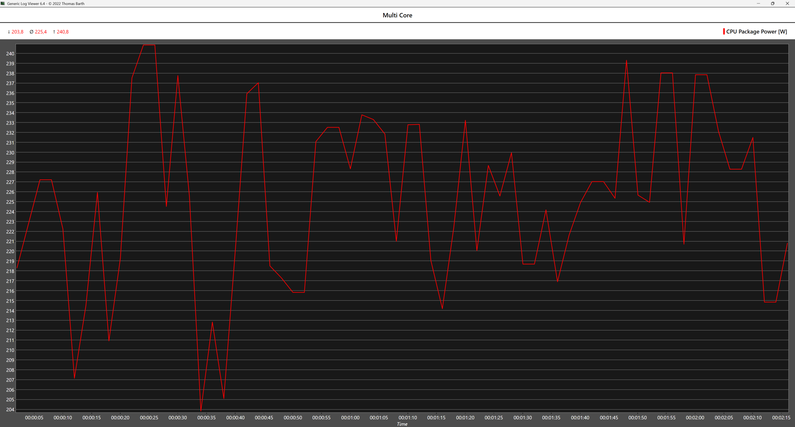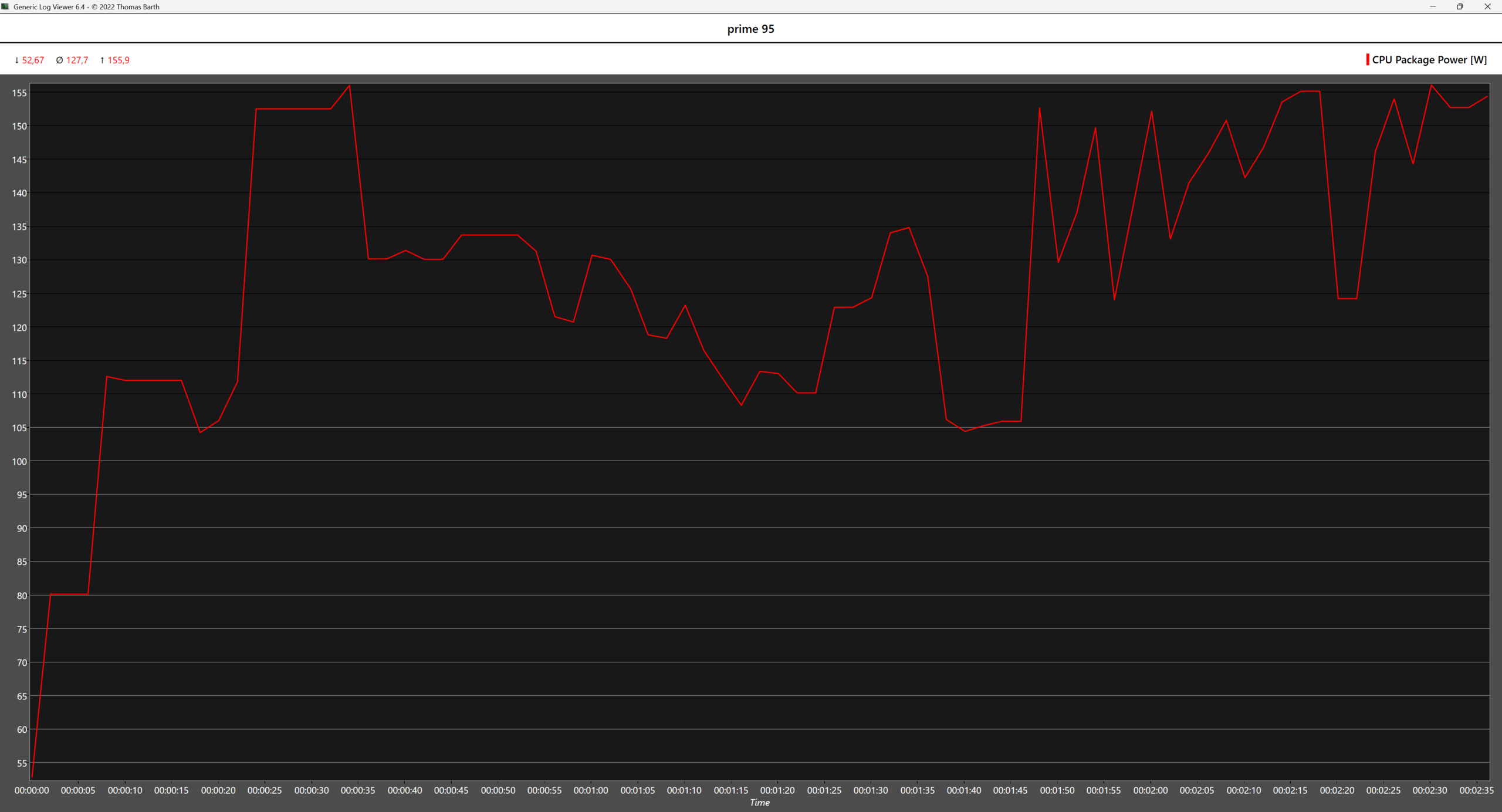 Azokban a forgatókönyvekben, ahol minden magot kihasználnak, például a Cinebench 2024 többmagos stressztesztjében vagy a Prime 95 nagy FTT tesztjében az AMD CPU még a nagy teljesítményű teljesítményprofil mellett is kevésbé energiaéhesnek tűnik. A Prime 95 tesztben az AMD CPU átlagosan 65 W-tal kevesebbet fogyaszt az Intelhez képest, miközben az Intel CPU is termikus throttling állapotba kerül, és a teszt első percében szinte eléri a TJMAX értéket, ezt követően pedig fokozatosan csökken a hőmérséklet. Ezek a szélsőséges esetek azonban a való világban nem túl valószínűek.