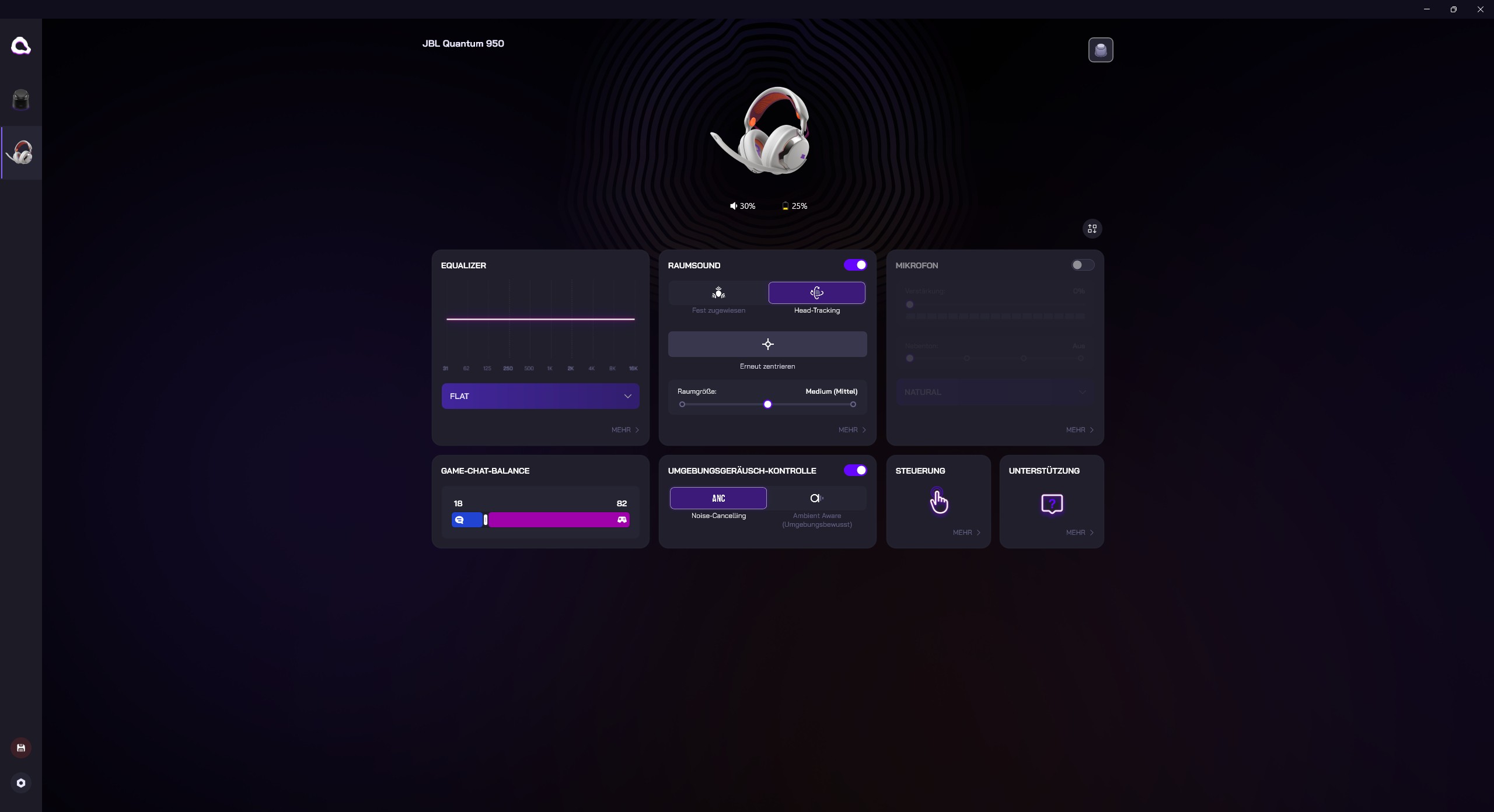 Szabványosított hangméréseink szerint a JBL Quantum 950 Wireless jó, lineáris hangminőséget biztosít. Viszonylag nagy hangerőt ér el, és a lejátszás kiegyensúlyozott marad a teljes frekvenciatartományban. Ezt szubjektív hallgatási benyomásaink is nagyrészt megerősítették. Szubjektíven nem találtunk valódi korlátokat a használhatóság tekintetében, akár zenéhez, akár játékhoz. A térhatású hangzás különösen lenyűgöző. Támogatja a 7.1-es hangzást mind fix csatornakiosztással, mind fejkövetéssel. A hangok lokalizálása már a fix hozzárendeléssel is jó. A fejkövetés még könnyebbé teszi, bár legalább enyhe fejmozgást igényel. Nem kell előre-hátra lóbálnia a fejét.