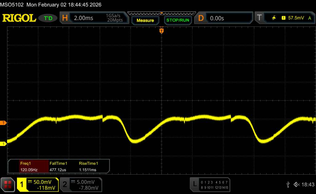 (+) | a csúcsok lineárisak (6.3% delta az előző frekvenciához képest)