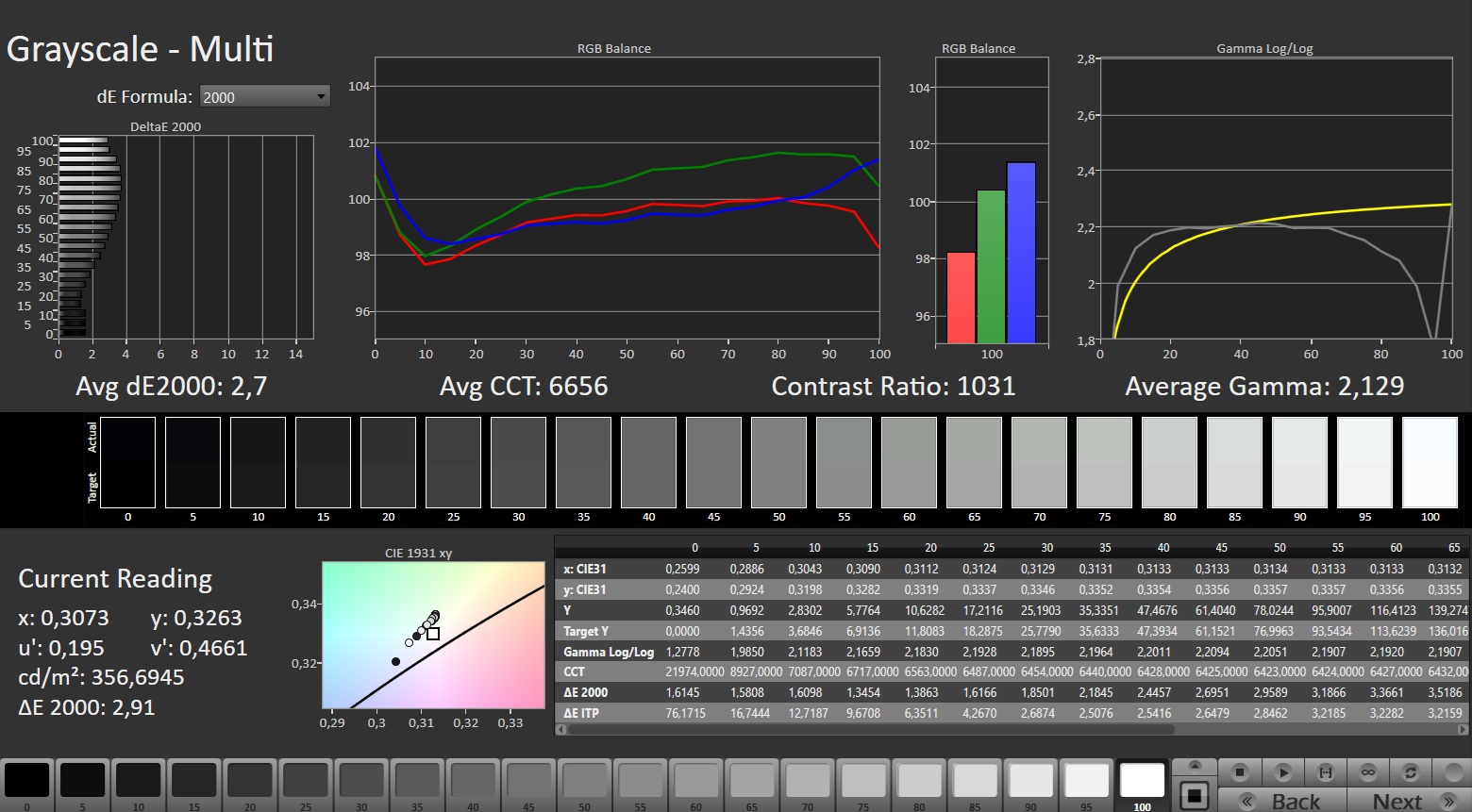 ΔE Greyscale Calman: 2.7 | ∀{0.09-98 Ø5}