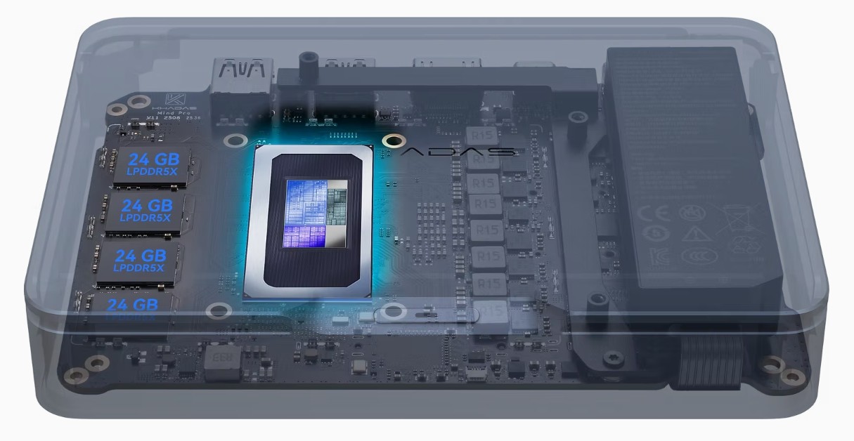 | Khadas Mind Pro Intel Core Ultra X7 358H ⎘ Intel Arc B390 12 Xe3 Panther Lake iGPU ⎘ 64 GB Memória, 2048 GB SSD | List Price: 1799€ | 566 g | 105 x 146 x 58 mm | |