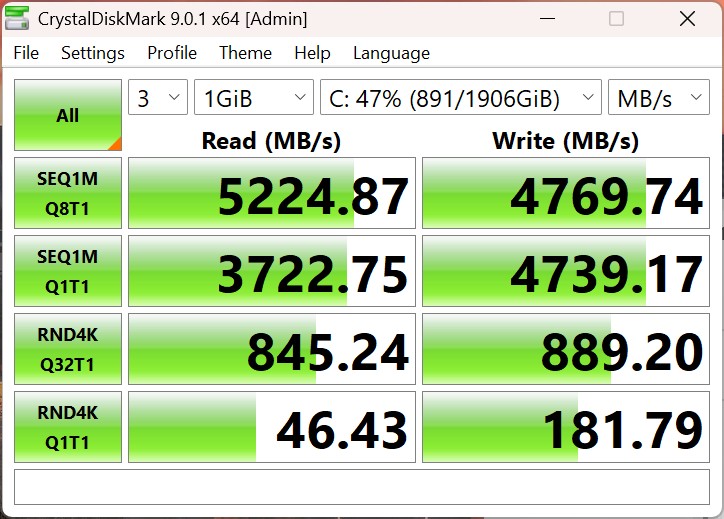 | Connectivity - USB 3.x / USB4 / TB - AS SSD Seq Read Test (1GB) | |