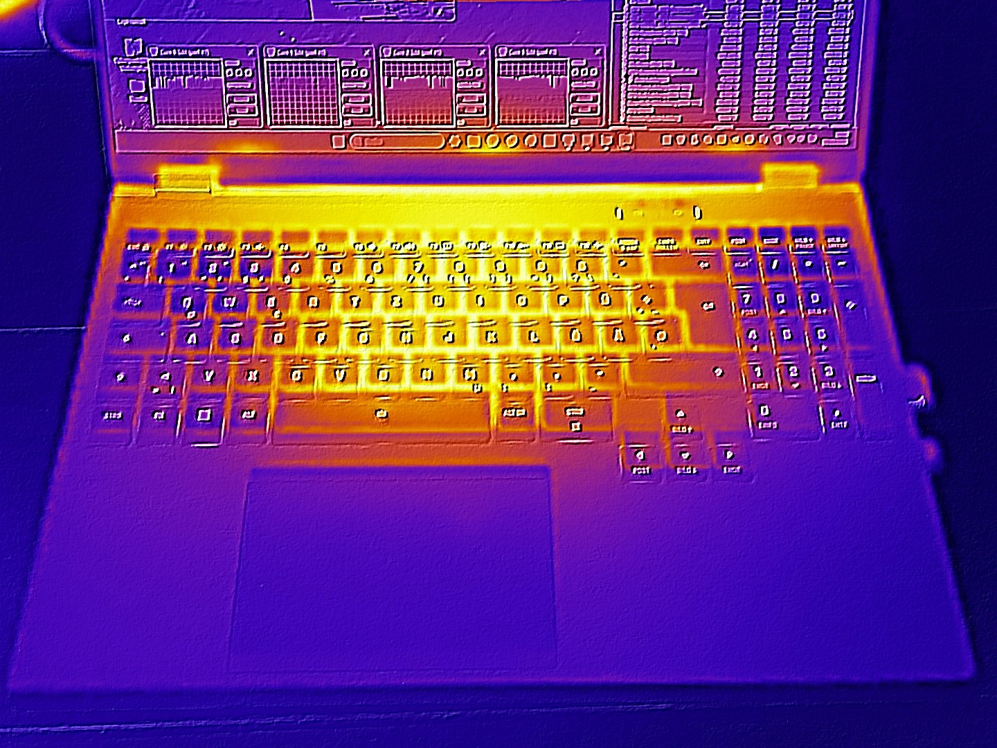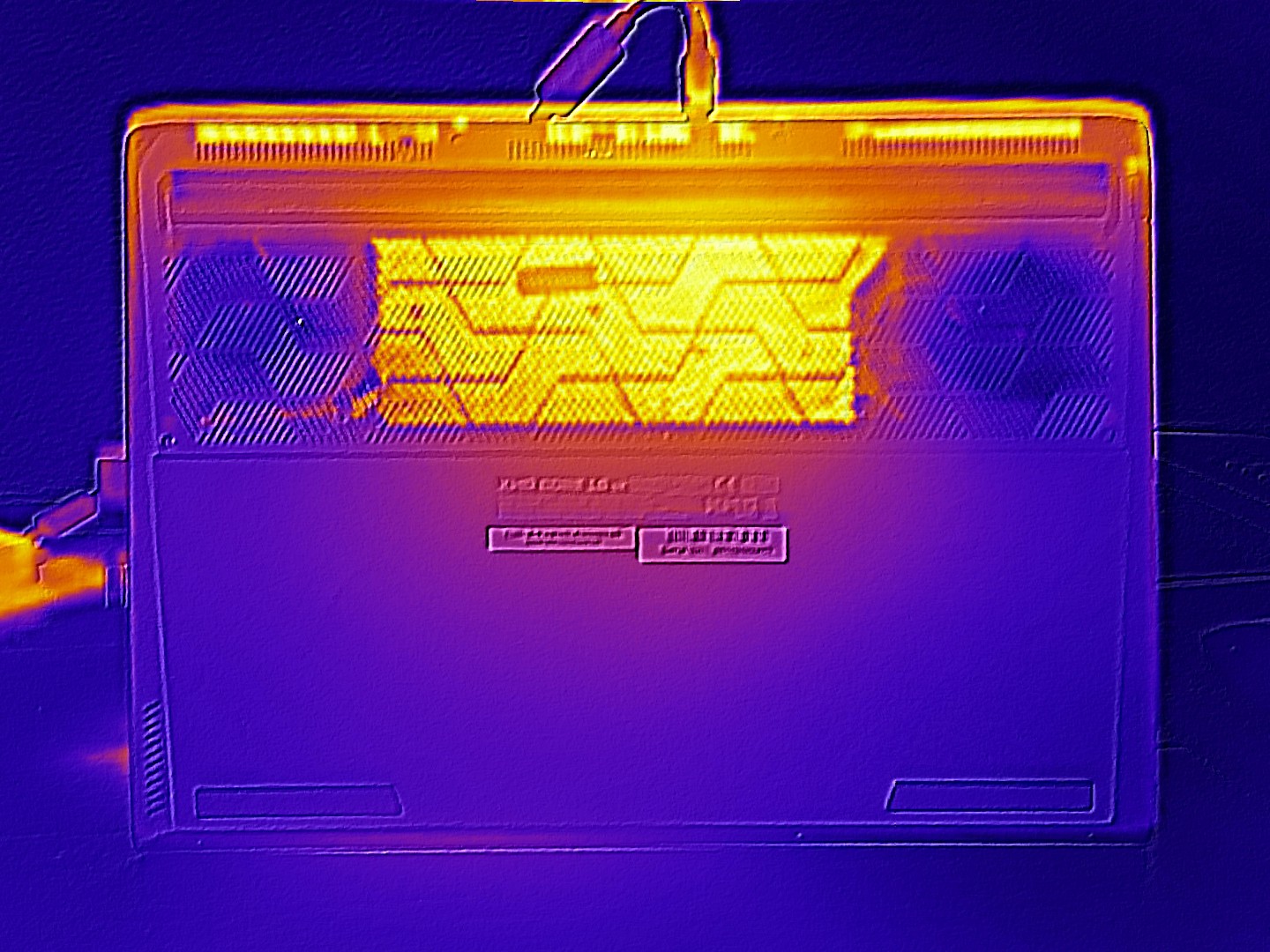 (-) A felső oldalon a maximális hőmérséklet 46 °C / 115 F, összehasonlítva a 40.4 °C / 105 F átlagával , 21.2 és 68.8 °C között a Gaming osztálynál.