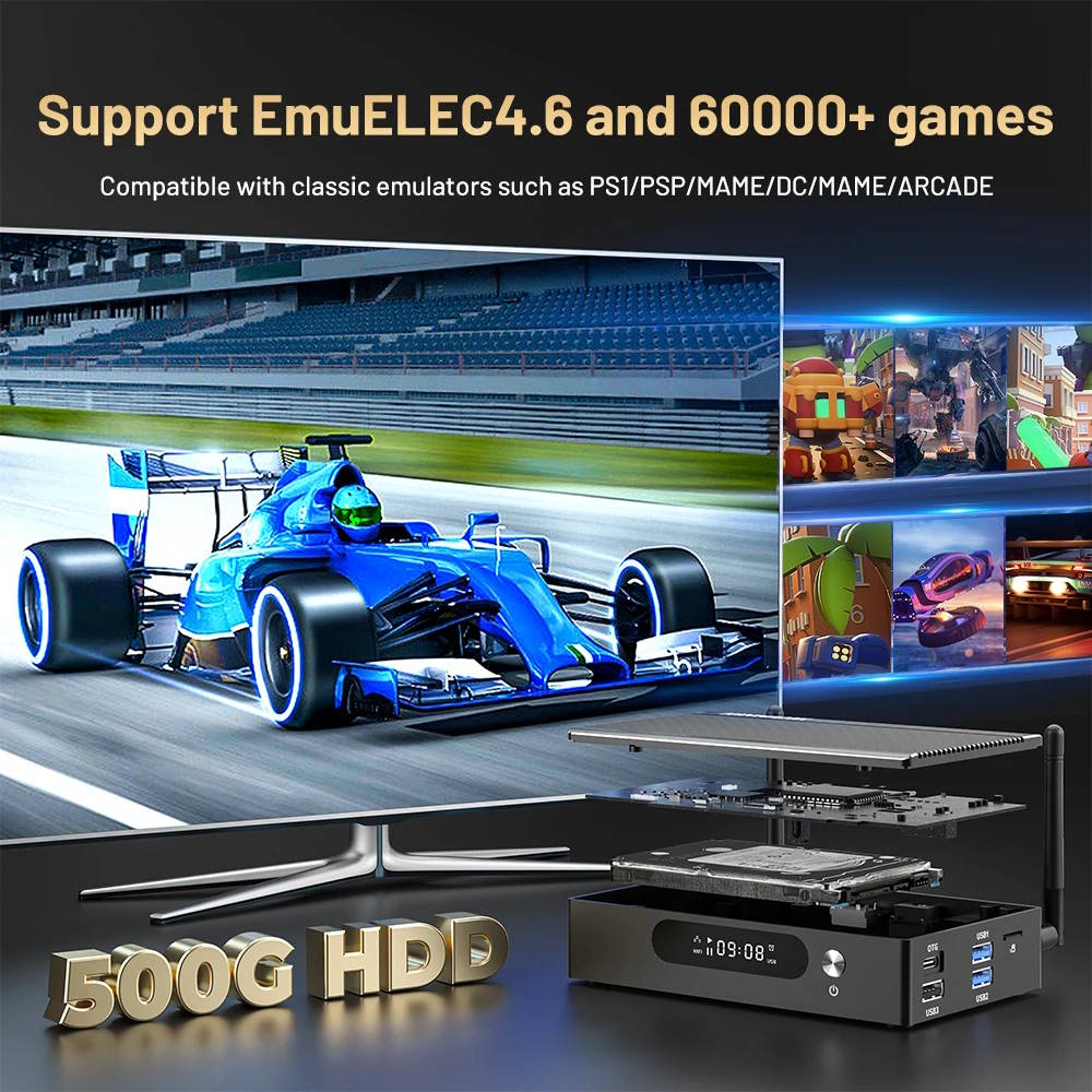 A KinHank Super Console X3 Pro meghajtásáról az Amlogic S905X3 gondoskodik négy Cortex-A55 maggal és 4 GB RAM-mal. Ez a megfizethető árú játékrendszer az EmuELEC vagy a Android 9 operációs rendszeren futhat, ami azt jelenti, hogy ez a kis doboz médialejátszóként is használható a régebbi tévékhez, amelyek nem férnek hozzá az intelligens funkciókhoz vagy az alkalmazásbolthoz.