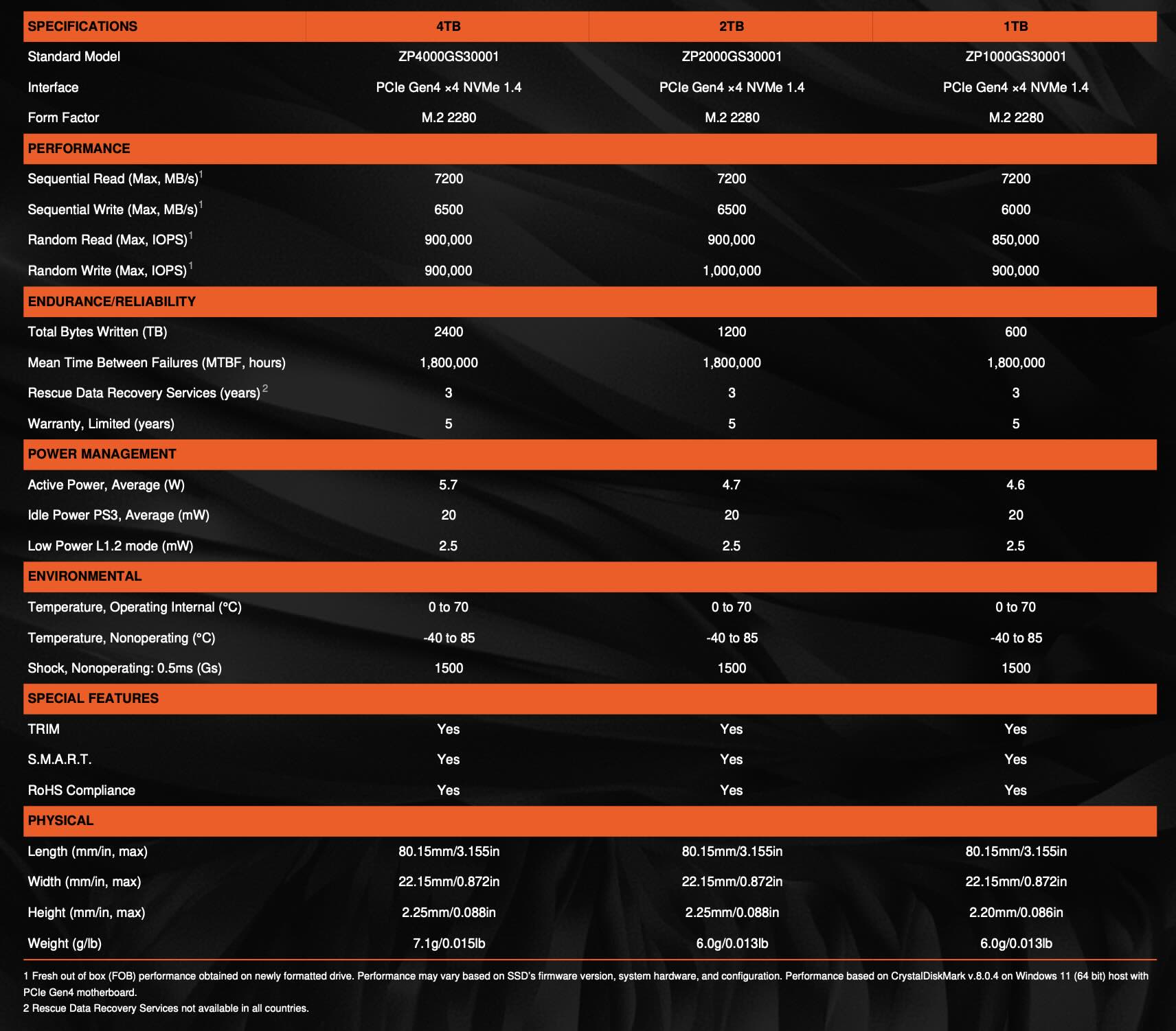 Egyértelmű, hogy a sebességek meg sem közelítik a PCIe Gen 5 meghajtókét, ami aligha meglepő. A legtöbb mindennapi munkaterheléshez azonban a teljesítménynek megfelelőnek kell lennie. Az állóképesség is csorbát szenvedett - a FireCuda X1070 SSD most már csak 2400, 1200 és 600 TBW-os hivatalos minősítéssel rendelkezik a 4 TB-os, 2 TB-os és 1 TB-os változatok esetében, míg az 530R esetében 5050, 2400 és 1100 TBW-os minősítéssel.