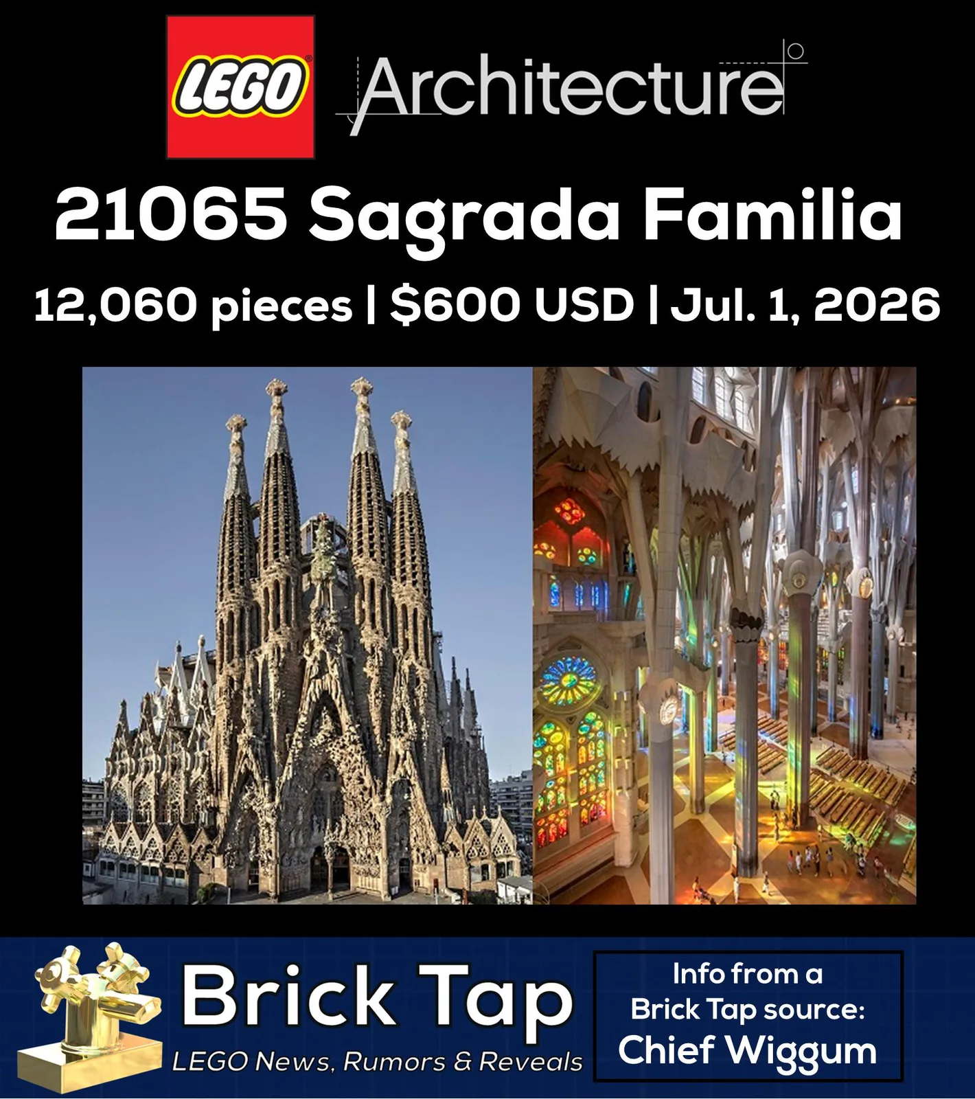 A Chief Wiggum által leleplezett és a Redditen és az Instagramon megosztott információk szerint ugyanis egy 21065 Sagrada Família nevű építészeti készletről van szó, amely a Barcelonában található híres bazilikát ábrázolja, amely 172 méteres magasságával a világ legmagasabb temploma.