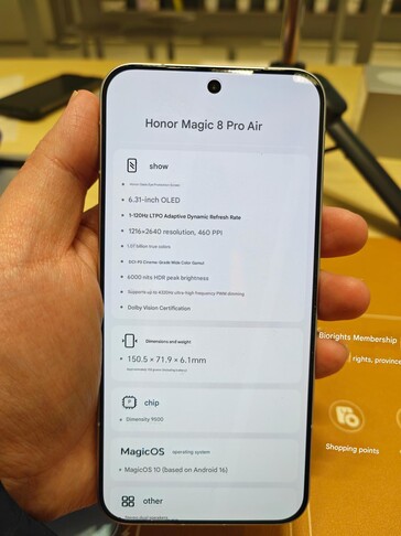 A Pro Air modell az egyetlen a Magic8 kvartettben, amely a Mediatek legújabb Dimensity 9500-as, ami némileg alacsonyabb teljesítményt eredményez a benchmarkokban. Azonban a többi specifikációt tekintve, beleértve az 5500 mAh-s akkumulátort 80 W-os gyorstöltéssel és 50 W-os vezeték nélküli töltéssel, elég lenyűgöző, hogy a Honor MagicPro Air mennyire tele van zászlóshajó technológiával a kompakt 150,5 x 71,9 x 6,1 mm-es házban. Honor az első hivatalos teaser videó bemutatja, hogy mennyi mindent pakoltak az aprócska testbe: