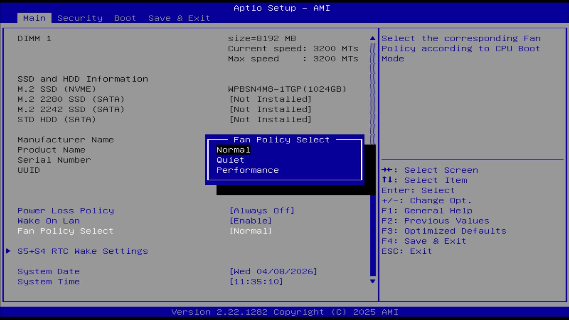 Minden vizsgálatot a szállított "normál üzemmódban" végeztünk. A BIOS-ban opcionálisan csendes és teljesítményprofil is választható.