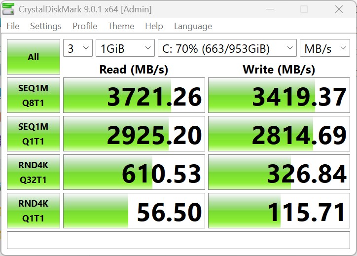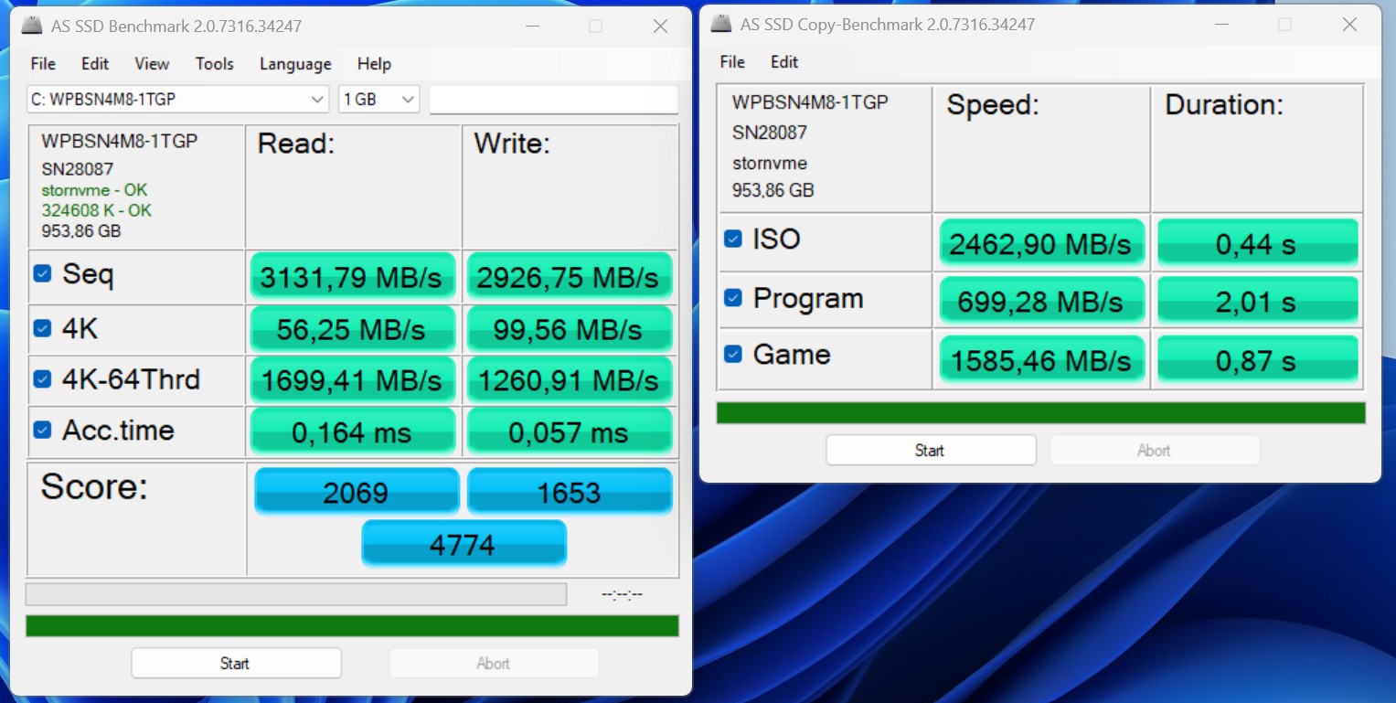 | Connectivity - USB 3.x / USB4 / TB - AS SSD Seq Read Test (1GB) | |