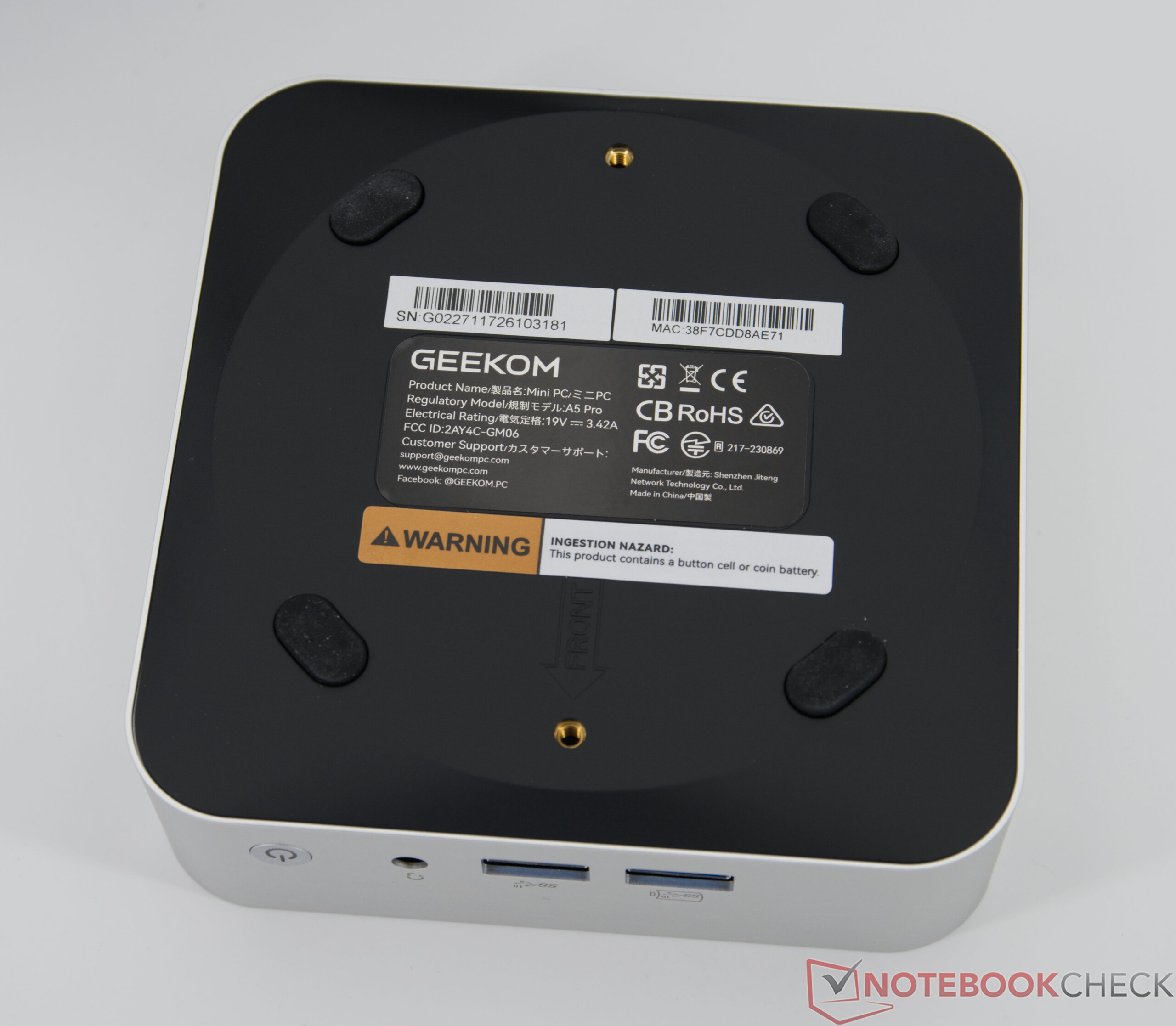 A Geekom A5 Pro házát már a gyártó több modelljében is használják. A kialakításról és a jellemzőkről ezért teljes körűen beszámolunk korábbi Tesztjelentésünkben. A csatlakoztathatóság egy kicsit kevésbé kiterjedt, mint a drágább modelleknél. Sajnos nélkülöznie kell az olyan modern interfészeket, mint az USB4.