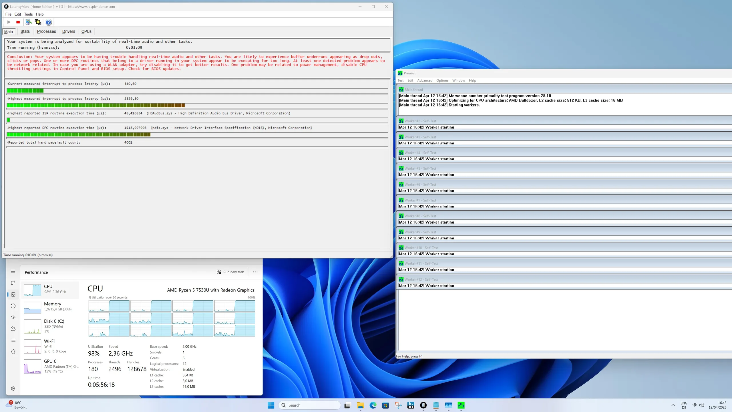 A AMD Ryzen 5 7530U szilárd CPU-teljesítményt kínál a középkategóriás szegmensben. Hat magjával és tizenkét szálával különösen alkalmas a többfeladatos munkavégzésre, az irodai alkalmazásokhoz és a produktív munkaterhelésekhez. A processzor a számításigényesebb feladatokat, például az adatfeldolgozást vagy a könnyű renderelést is megbízhatóan elsajátítja, de a jelenlegi csúcskategóriás modellek alatt marad.