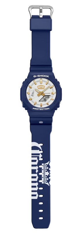 A G-Shock GA-2100CR25-2A fehér számlapot kapott, aranyszínű hangsúlyokkal, mint például az indexek és a két analóg mutató. Emellett a Corona korona ikonja arany színnel van nyomtatva a számlapon és fehér színnel a szíjon. Az óra kék műgyanta lünetta, ház és szíj található, ez utóbbin a márka logója is fehér színben szerepel.