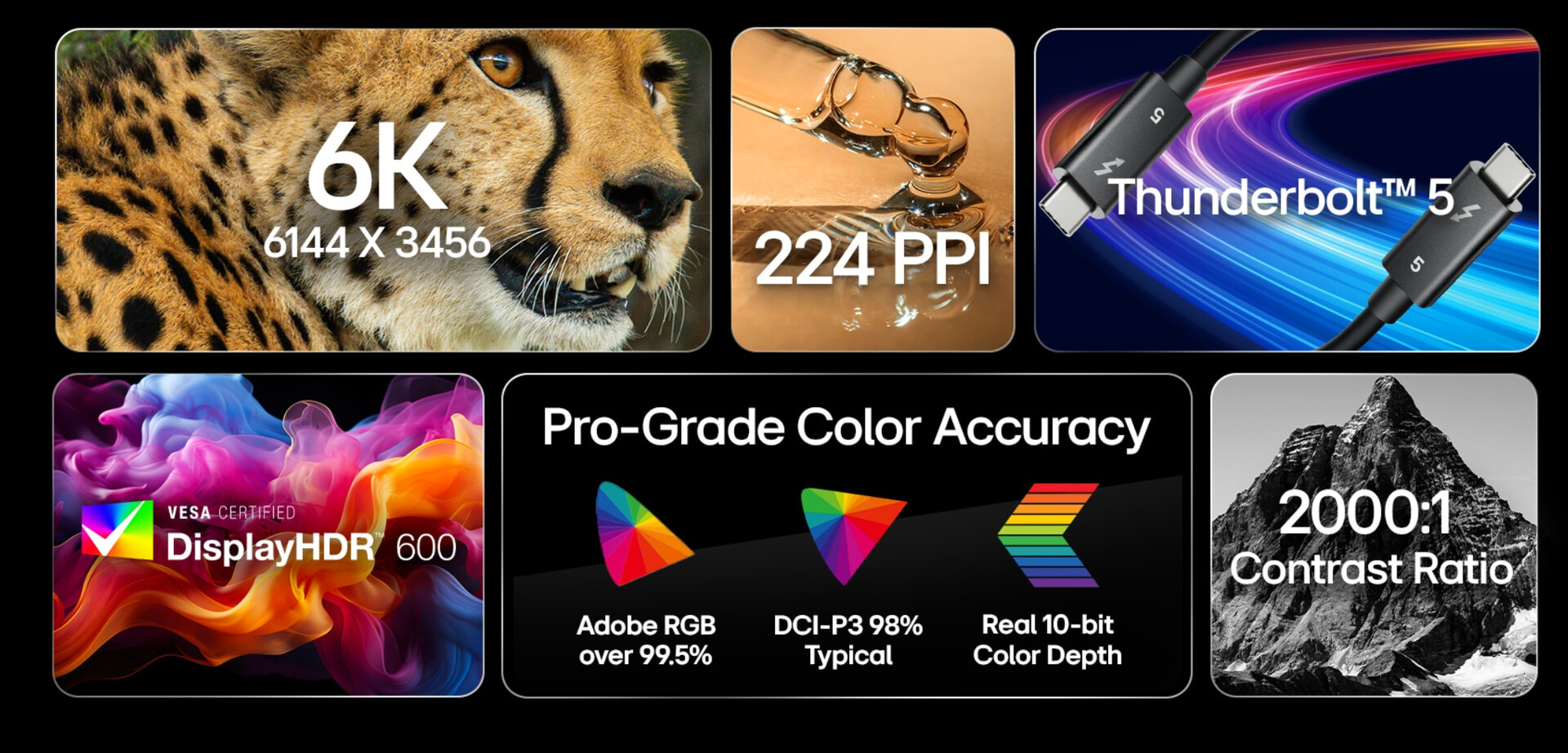 Az UltraFine 32U990A egy Apple Studio Displayre (jelenleg 1 699 dollár az Amazonon) hasonlít, és 31,5 hüvelykes IPS panelén keresztül 6 144 x 3 456 képpontot ad ki, így 224 PPI pixelsűrűséget biztosít. Emellett a monitor 98%-os DCI-P3 és 99,5%-os AdobeRGB színtér-lefedettséget biztosít 450 nites SDR csúcsfényerővel és 600 nites HDR fényerővel. Sajnos az LG a monitor frissítési frekvenciáját 60 Hz-en maximálja, ami gyakran előfordul a professzionális monitoroknál, ahol a vizuális hűség nagyobb értéket képvisel, mint a képsebesség.