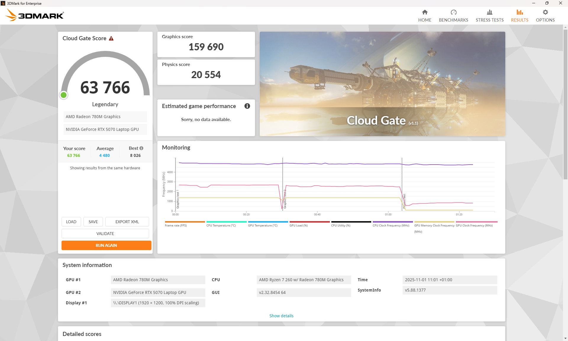 HDMI csatlakoztatásával a dGPU aktív marad, és az üresjárati teljesítmény 21 W-ra ugrik. Játék közben az A18 nagyon energiatakarékos; turbó üzemmódban a fogyasztás a többi RTX 5070-es modellhez igazodik.