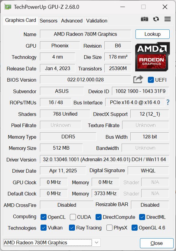 A AMD Ryzen 7 260 8 magot és 16 szálat tartalmaz. Teljesítménye egyenletes, de könnyen legyőzi a Ryzen 9 9955HX a G18 vagy az Intel Core Ultra 200-as sorozata. A turbó üzemmód alig javítja a CPU teljesítményét.