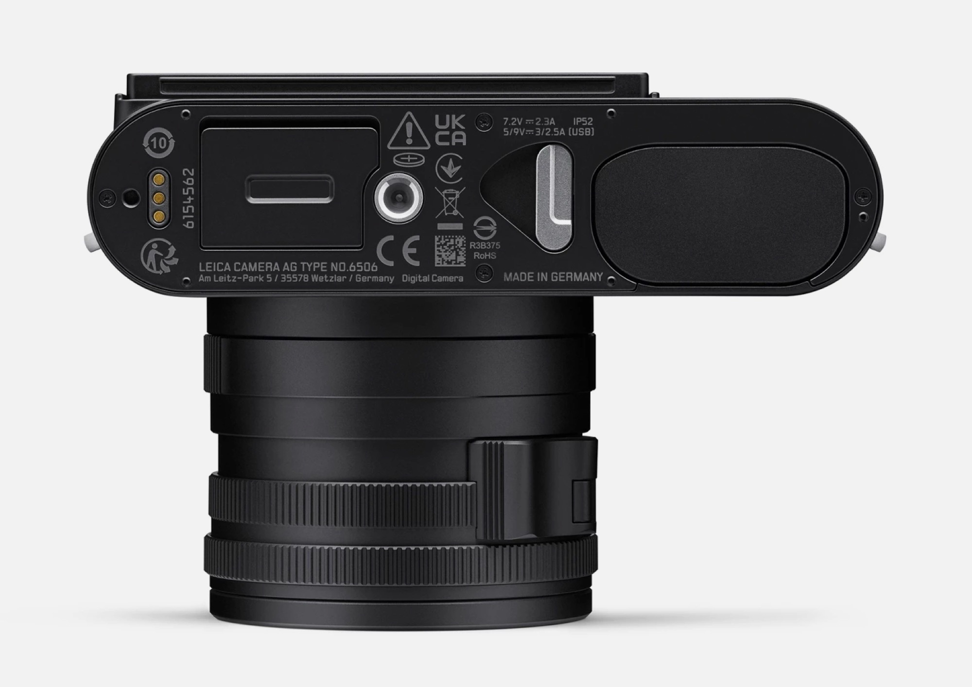 A képen látható kialakításnak két előnye van a Leica M11-hez képest. Először is, az akkumulátort a vázról leválasztó csúszka az új pozícióban könnyebben kezelhető, miközben egy gyorskioldó lemez van a fényképezőgéphez rögzítve. Másodszor, a Leica három fémérintkezőt ad hozzá a tartozékok számára. A Leica Q3 esetében ezek egy olyan kézi markolathoz szolgálnak, amely lehetővé teszi a fényképezőgép vezeték nélküli töltését egy Qi töltőpadon.