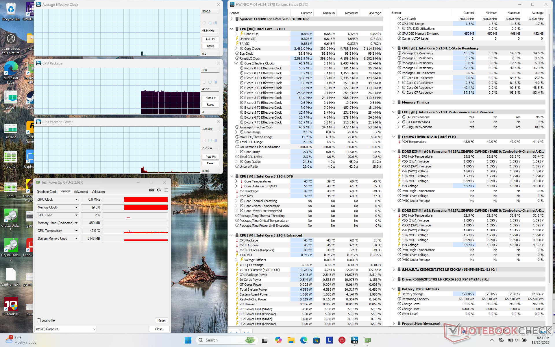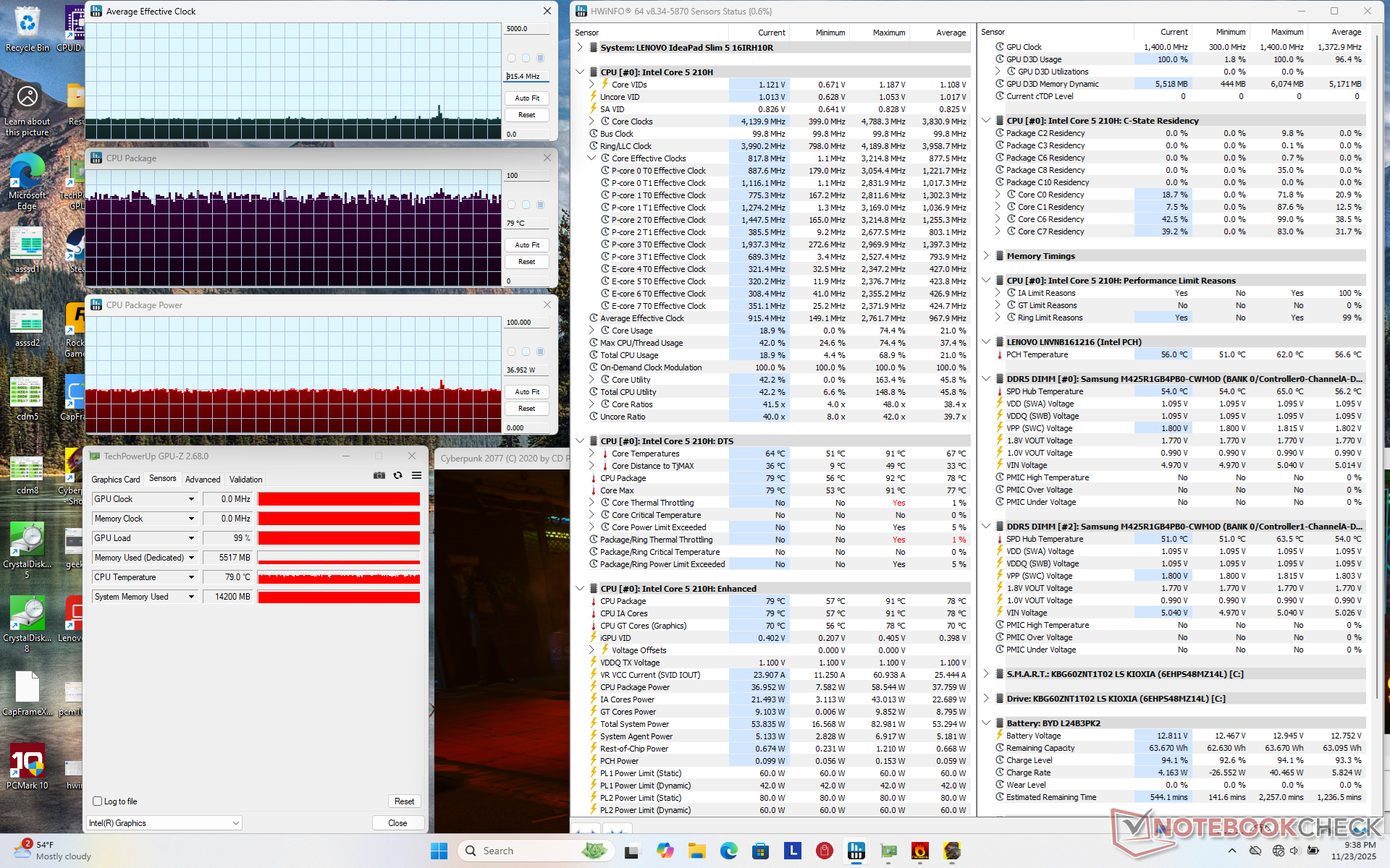 | Átlagos CPU órajel (GHz) | GPU órajel (MHz) | Átlagos CPU hőmérséklet (°C) | |
