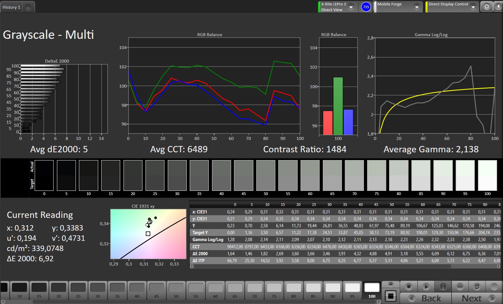 | Greyscale dE 2000 * | 2.4 | 1.9 | 2.9 | |
