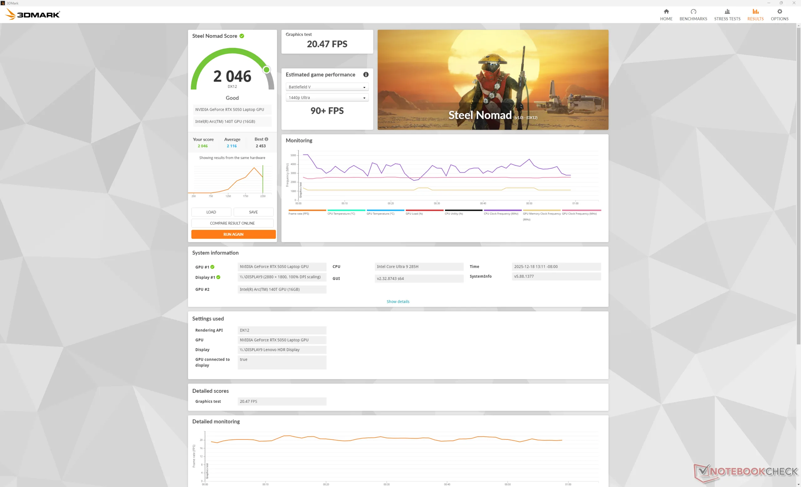 A Core Ultra 9 285H nem kínál jelentős teljesítménybeli előnyöket a kisebb teljesítményű Core Ultra 7 255H konfigurációhoz képest. Sőt, még papíron is csak 100-300 MHz-es különbségük van, ami a Yoga Pro 9 16 G10-ben nem jelent valós különbséget.