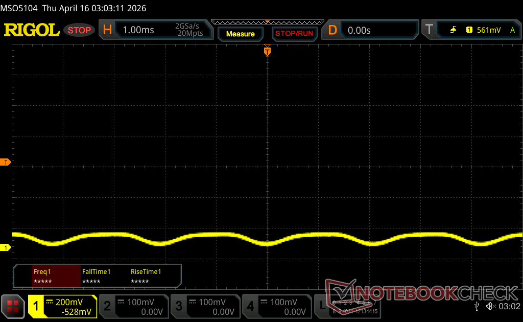 A kijelző háttérvilágítása 479.46 Hz-en villog (a legrosszabb esetben, pl. PWM használatával) Villódzás észlelve a 100 % vagy annál kisebb fényerő-beállításnál. E fényerő-beállítás felett nem lehet villogás vagy PWM. A 479.46 Hz frekvenciája viszonylag magas, így a legtöbb PWM-re érzékeny felhasználó nem észlel semmilyen villogást. Vannak azonban jelentések, amelyek szerint egyes felhasználók még mindig érzékenyek a PWM-re 500 Hz-en és magasabb frekvencián, ezért ügyeljen rá. Összehasonlításképpen: az összes tesztelt eszköz 52 %-a nem használja a PWM-et a kijelző elsötétítésére. Ha PWM-et észleltek, akkor átlagosan 7898 (minimum: 5 - maximum: 343500) Hz-t mértek. | |||