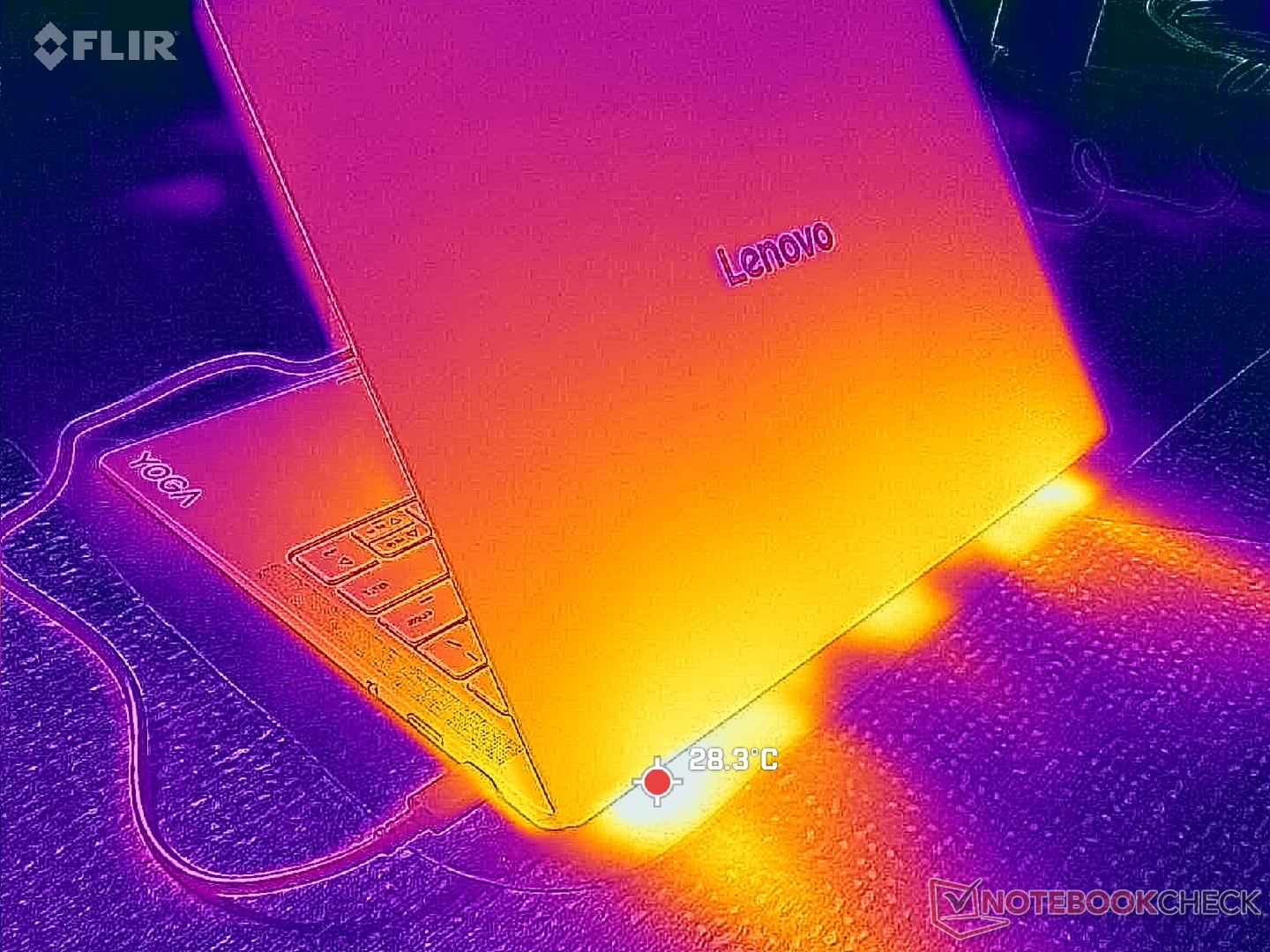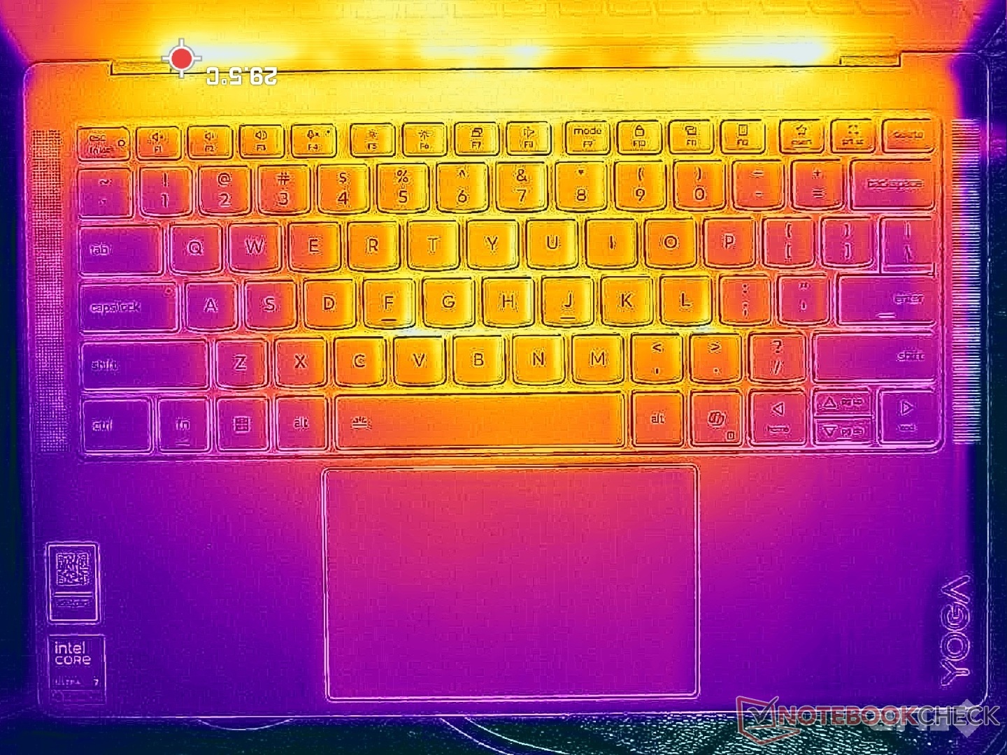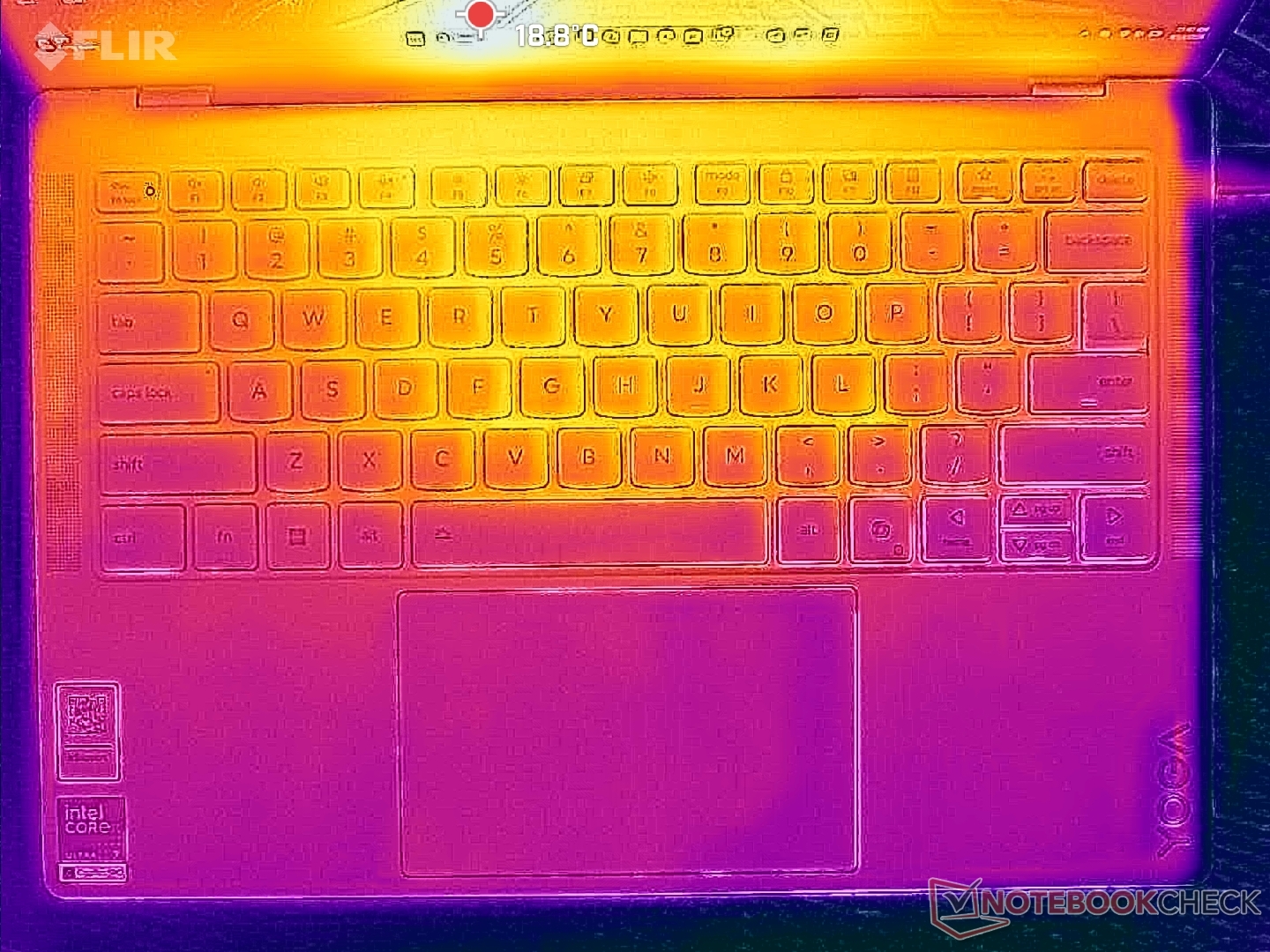 A felületi hőmérséklet még igényes terhelés esetén is viszonylag hűvös. A forró pontok csak 34 C-on tetőznek, szemben a 43 C feletti 43 C-os értékkel a HP OmniBook Ultra 14.
