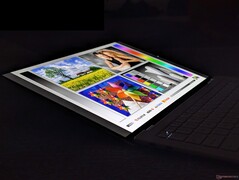 A 2025-ös Yoga Slim 7i Aura kijelzőjéhez képest az új 2026-os Yoga Slim 7i Ultra Aura kijelzőnk kétszeres frissítési frekvenciával, kétszeres HDR-fényerővel (tesztünkben akár 1056 nits-ig) és 2,25-szörös felbontással rendelkezik.