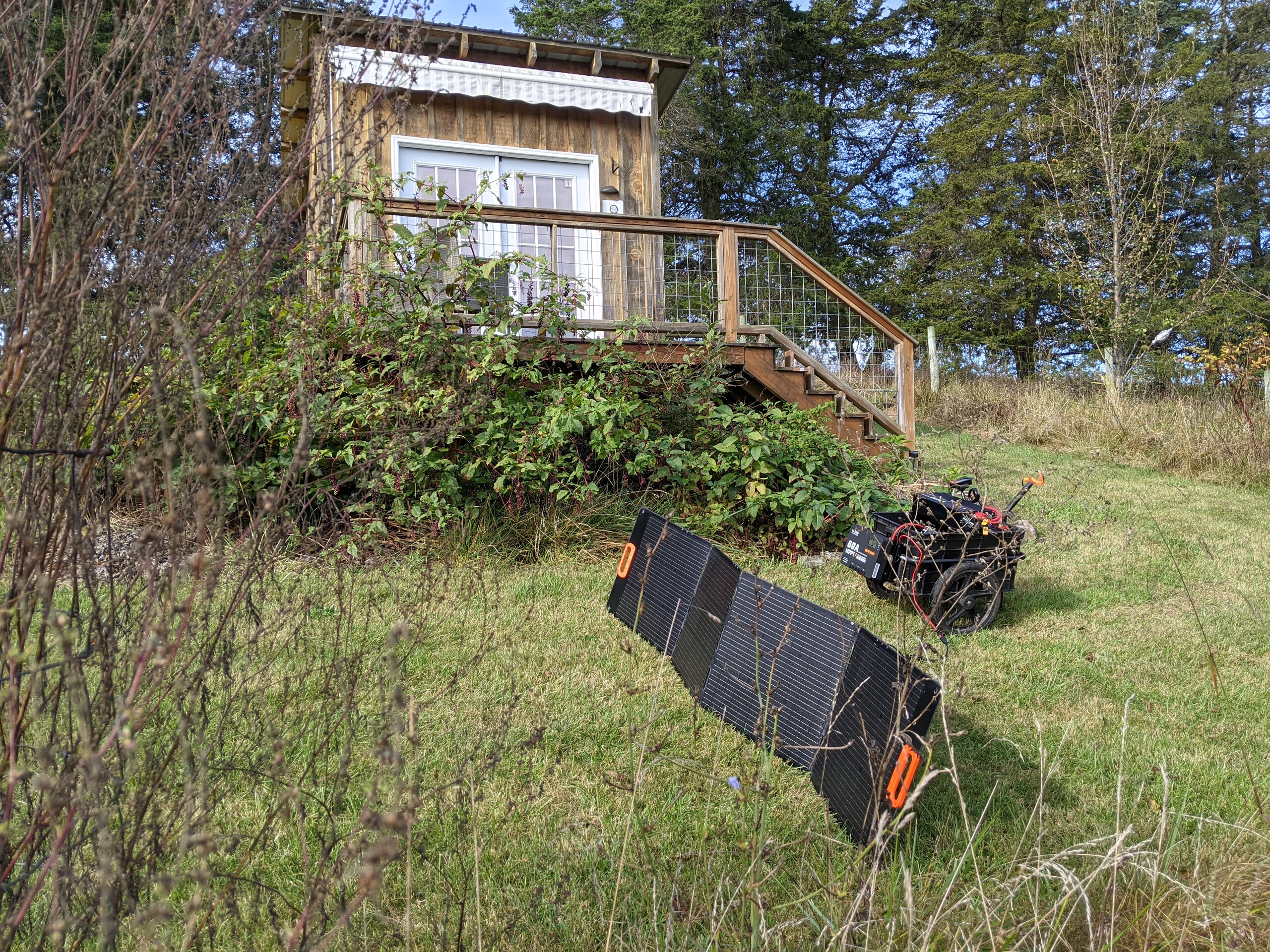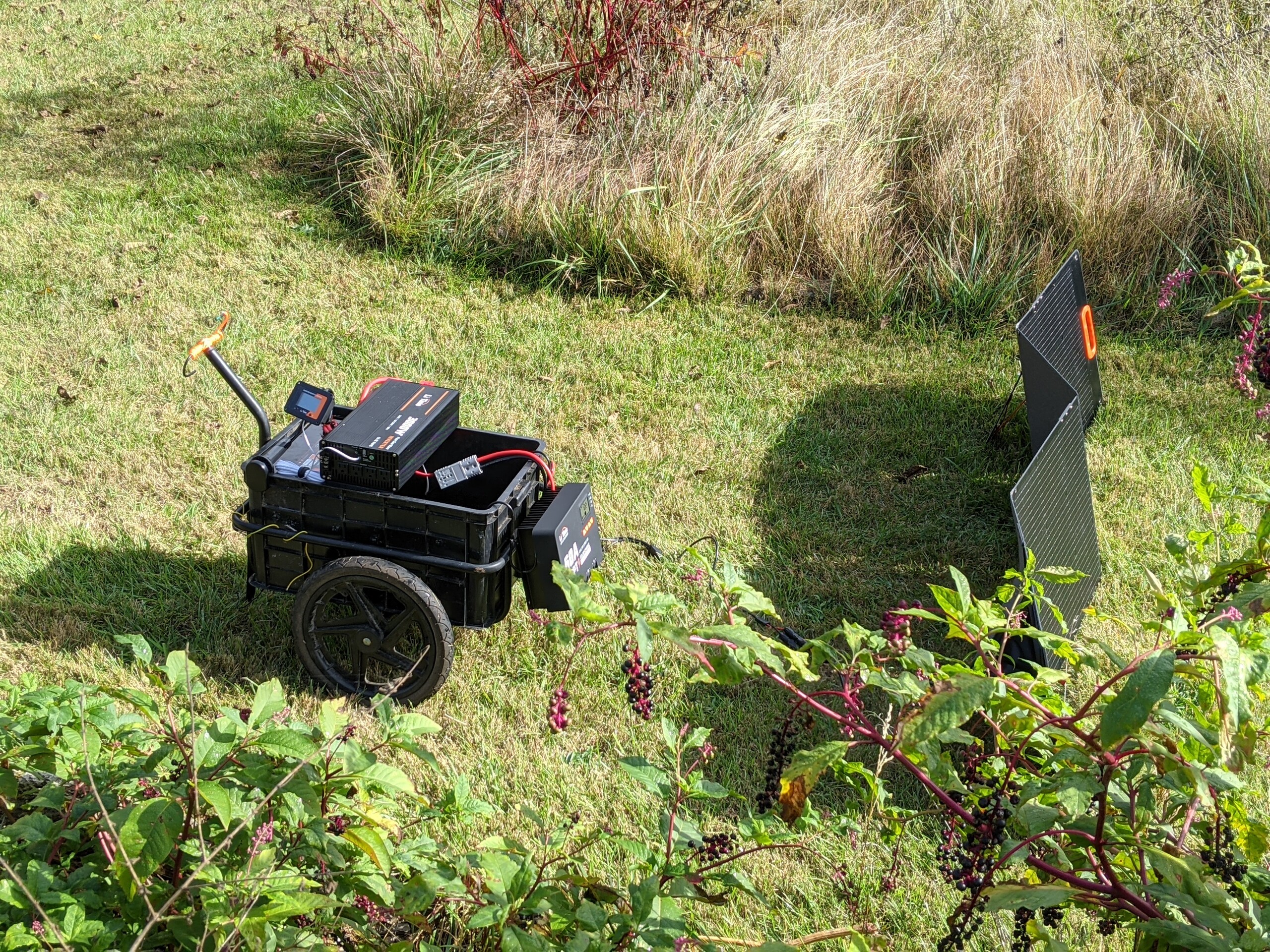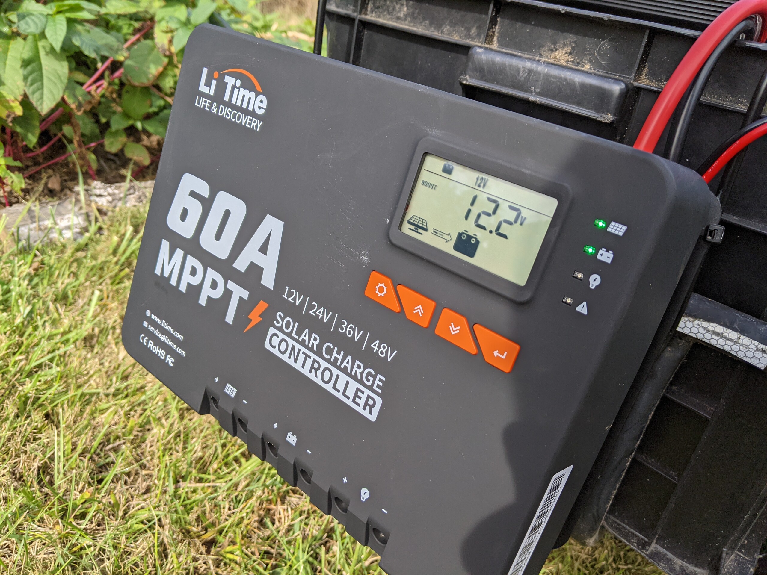 Teljes feltöltéssel, 38F-os időjárással és egy 400W-os fűtőberendezéssel a beállítás 9 órán keresztül teszteltük egy aprócska házban. A beállítás nem okozott csalódást, és nyolc és fél órán keresztül stabilan áramoltatta a fűtőtestet. Az akkumulátor az előre jelzett teljes kilenc órán át kitartott volna, de az inverter alacsony energiaellátásra figyelmeztető csengője azt tanácsolta, hogy ne merítse ki a teljes akkumulátort. Mivel ekkor már napfény volt, a rendszert ezután egy 200 W-os napelemhez csatlakoztatták, hogy megkezdjék a feltöltést. A napelemes töltésvezérlő jól teljesített, és töltötte az akkumulátort; a panelek alacsony teljesítménye miatt azonban a becsült töltési idő a 65 órás tartományban volt. Ezért a 200 W-os panel nagyszerű kiegészítő energiaként, de nem a legjobb megoldás a rutinszerű töltéshez. A napelemes töltésvezérlő nem vízálló.