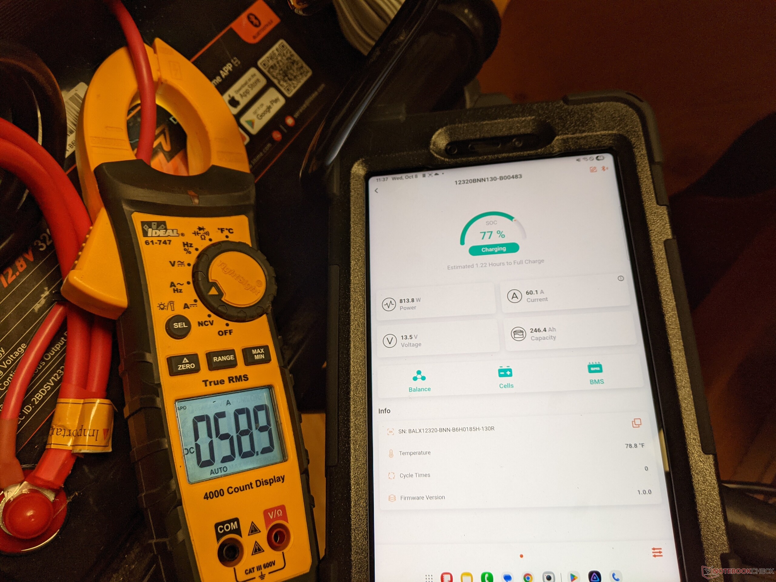 Az akkumulátor tesztelése nagyrészt az akkumulátor kültéri/kempingezési alkalmazásaira összpontosított, tesztelve a széles üzemi hőmérséklet-tartományra vonatkozó állításait, valamint az inverter azon képességét, hogy jelentős mennyiségű teljesítményt adjon ki. A gyakorlati tesztelés előtt azonban különböző méretű terheléseknél ampermérővel végeztünk méréseket, és megállapítottuk, hogy a fedélzeti BMS pontos méréseket és becsült üzemidőt szolgáltat az alkalmazásnak.