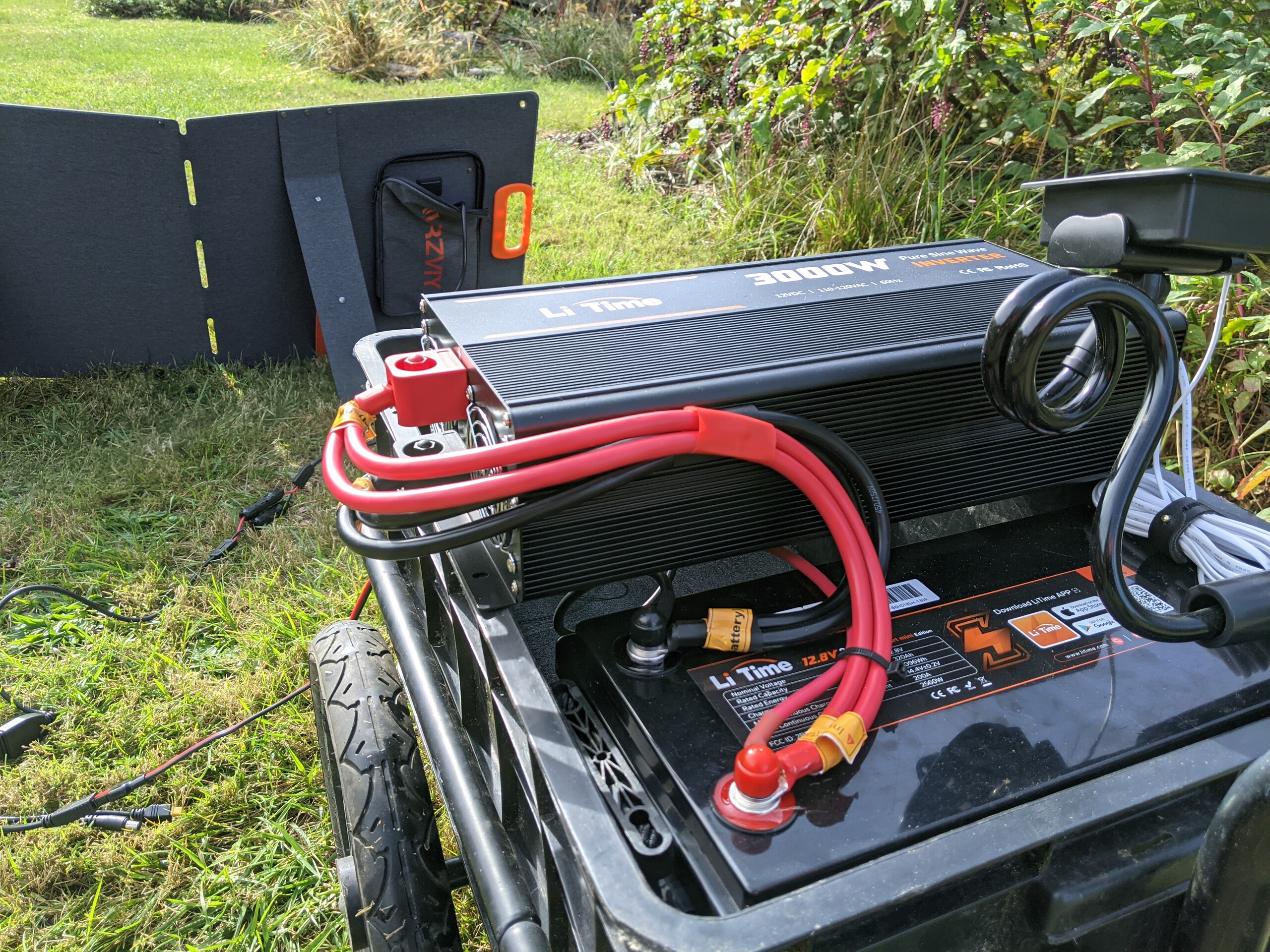 A rendszer bekötése is meglehetősen egyszerű volt, az útmutató egyértelmű utasításokat adott az akkumulátornak az inverterhez és a töltőhöz való csatlakoztatásához. A napelemes töltésvezérlő beállítása során azonban azt tapasztaltuk, hogy a készülék nem tartalmazott a rendszerhez csatlakoztatható kábeleket vagy hardvereket, így azokat meg kellett rendelni. Szerencsére az Amazonon volt lehetőség a Power Pole és a 120V-os Anderson csatlakozókra. Mivel a kábelek megérkezésére várnunk kellett, úgy döntöttünk, hogy a két töltési megoldást külön tartjuk, de meg kell jegyezni, hogy mindkettő beköthető a rendszerbe, mivel mindkettő rendelkezik olyan funkciókkal, amelyek megakadályozzák, hogy károsítsák az akkumulátort.
