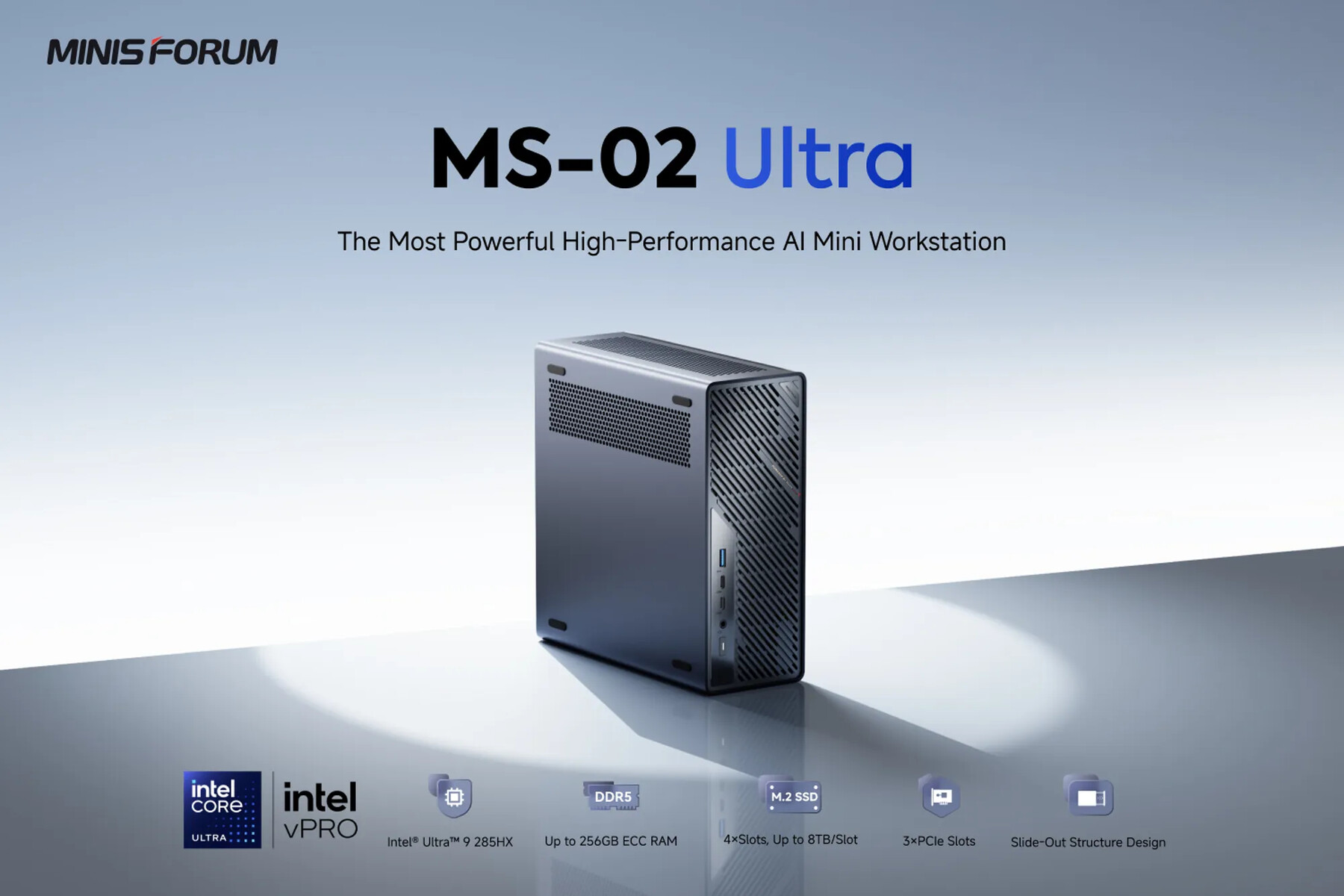 Míg a Core Ultra 9 285HX tartalmaz egy viszonylag gyenge iGPU-t tartalmaz, az MS-02 Ultra kárpótol ezért a grafikus kártya hozzáadására szolgáló PCIe-helyekkel és az eGPU-k csatlakoztatására szolgáló USB4 V2 portokkal. Ezenkívül az MS-02 Ultra négy M.2 2280 SSD-n keresztül akár 32 TB tárhelyet, valamint 256 GB RAM-ot és egy 350 W-os Flex tápegységet is képes elhelyezni egy 4,8 literes, 221,5 x 225 x 97 mm-es házban.