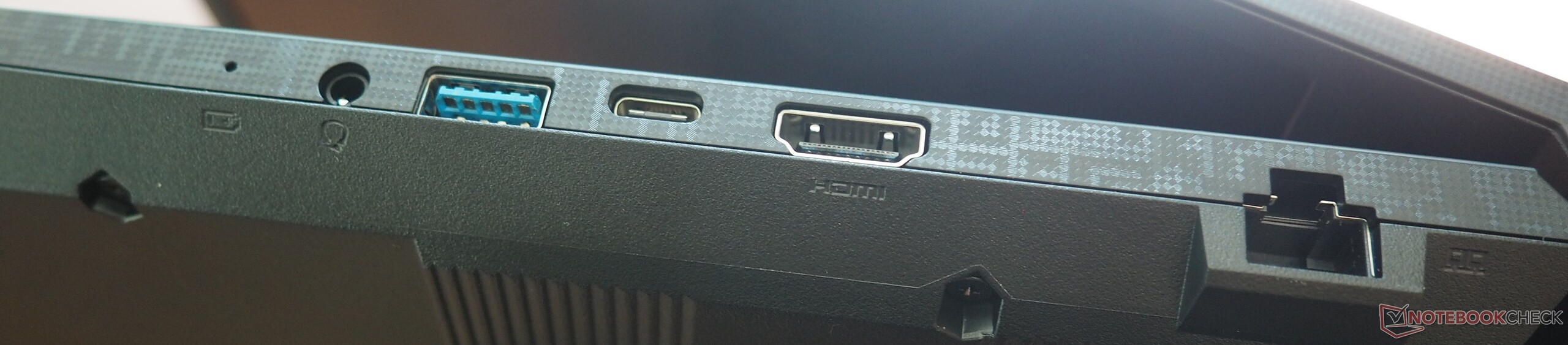 A Katana 17 három USB-A (3.0) és egy USB-C portot (3.1 Gen 2, beleértve a DisplayPortot is), valamint egy audiocsatlakozót, egy Gigabit Ethernet portot és egy HDMI 2.1 kimenetet kínál. A beépített Wi-Fi modul (Intel Wi-Fi 6E AX211) sebessége a teszttől függően tisztességes vagy nagyon jó. A HD webkamera képe azonban nagyon elmosódott.