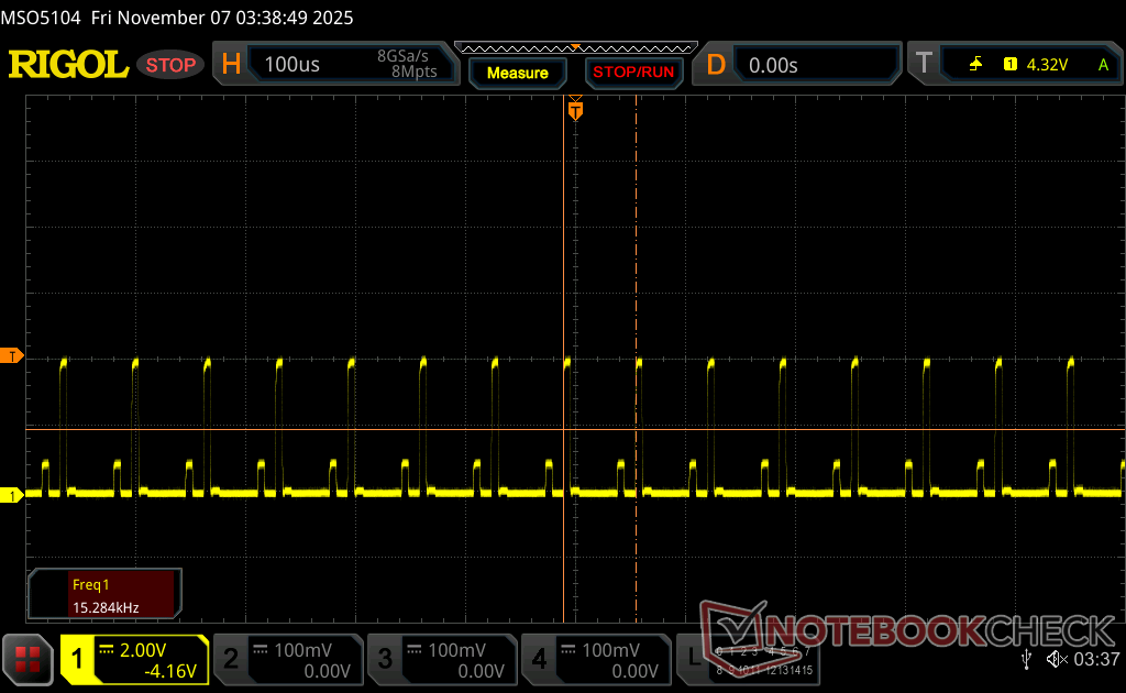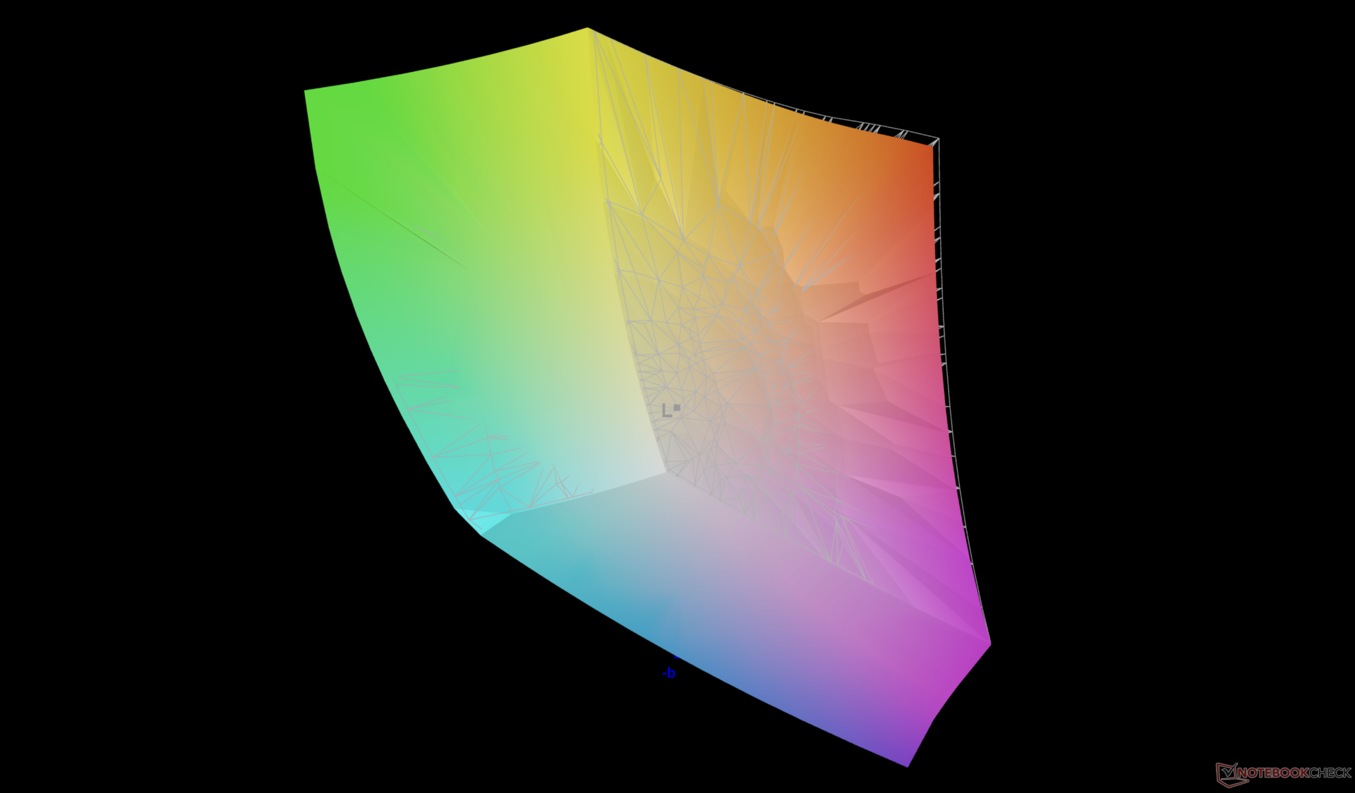 A maximális fényerő HDR módban elérheti a 815 nits-et, ami fényesebb, mint a legtöbb (ha nem az összes) OLED panellel ellátott laptopé. Ez a maximum azonban 532 nitre csökken, ha akkumulátorról működik.