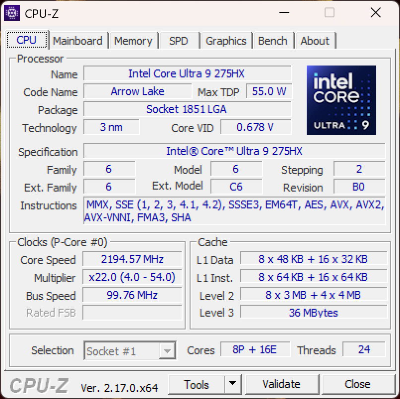 - Teljesítmény - Intel Arrow Lake-HX 150 W-os grafikával