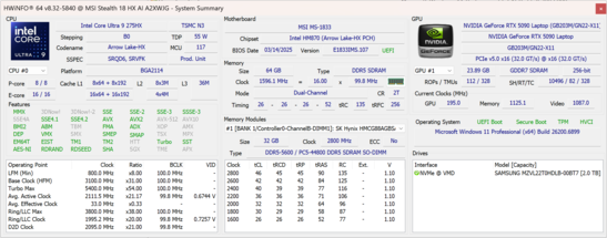 | MSI Stealth 18 HX AI A2XW Intel Core Ultra 9 275HX ⎘ NVIDIA GeForce RTX 5090 Laptop ⎘ 64 GB Memória, 2048 GB SSD | Amazon: $4,375.00 List Price: 4000 USD | 3 kg | 23.99 mm | 18.00" 3840x2400 252 PPI Mini-LED | |