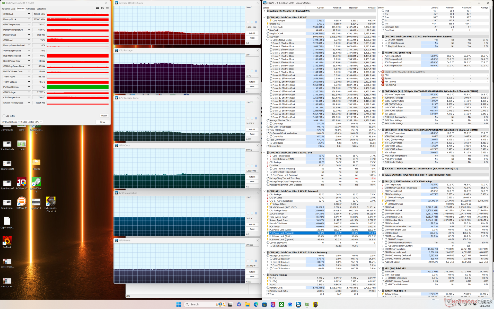 | Átlagos CPU órajel (GHz) | GPU órajel (MHz) | Átlagos CPU hőmérséklet (°C) | Átlagos GPU hőmérséklet (°C) | |