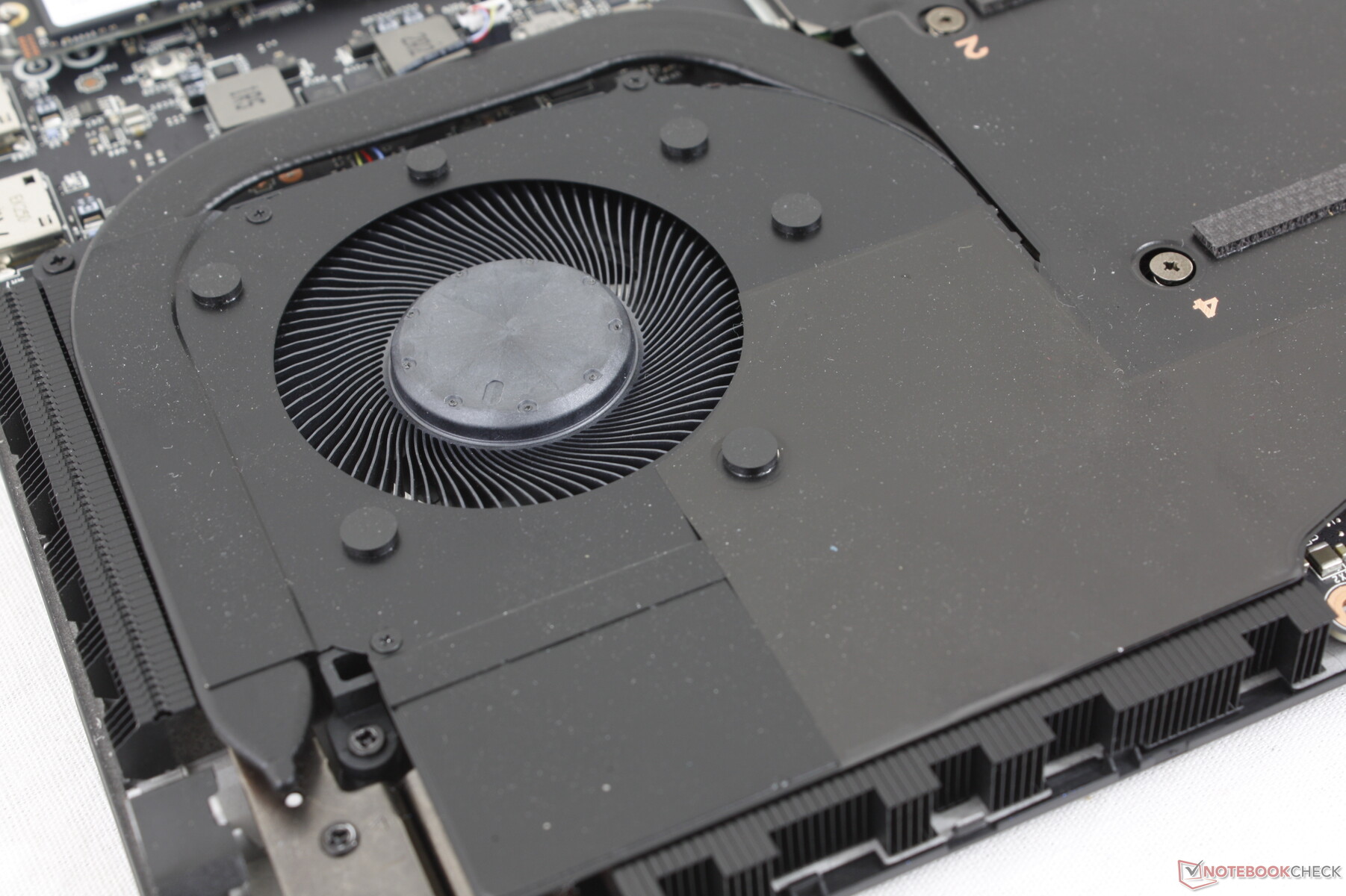 Sajnos az MSI-nek van néhány hátránya, részben a szupervékony profilja miatt. A ventilátorzaj és a maghőmérséklet különösen játék közben magasabb hangú, illetve melegebb, mint a versenytársaknál, például a Razer Blade 18 vagy a fent említett Alienware. A Cooler Boost üzemmód enyhíti a hőmérsékleti szempontokat, de a magasabb ventilátorzaj elviselhetetlen lehet egy jó fejhallgató nélkül.