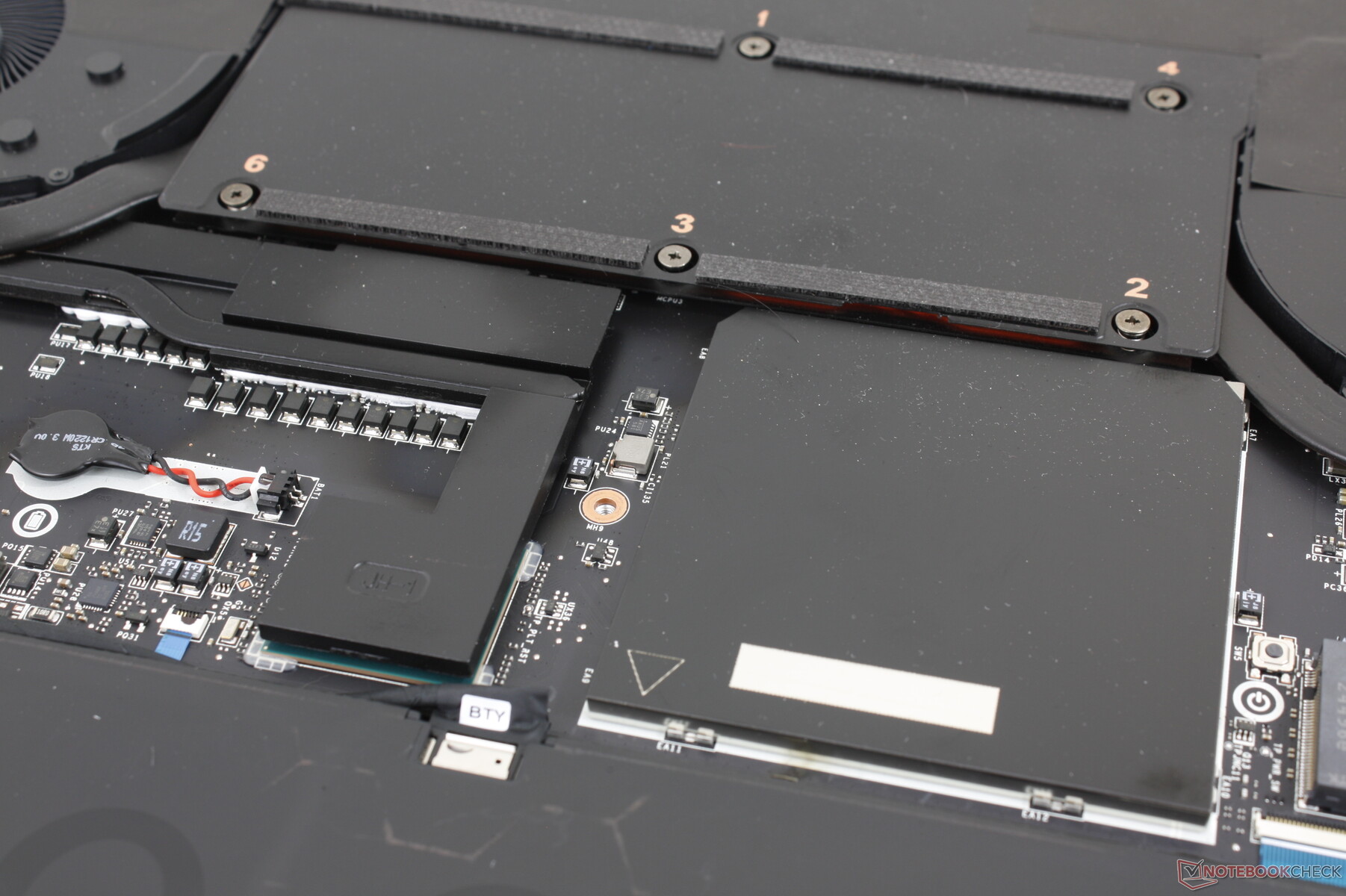 A 99 Wh-s akkumulátor a lehető legmagasabb, anélkül, hogy megszegné a TSA-törvényeket. Ennek ellenére az üzemidő a kategóriában csak átlagos, alig kevesebb mint 5 óra valós böngészési használat mellett, iGPU módban. Az eredmények rövidebbek, mint a Razer Blade 18 vagy a Asus ROG Strix G18 pár órával, ugyanakkor hosszabbak, mint az MSI Raider A18 vagy az Alienware 18 Area-51 esetében.