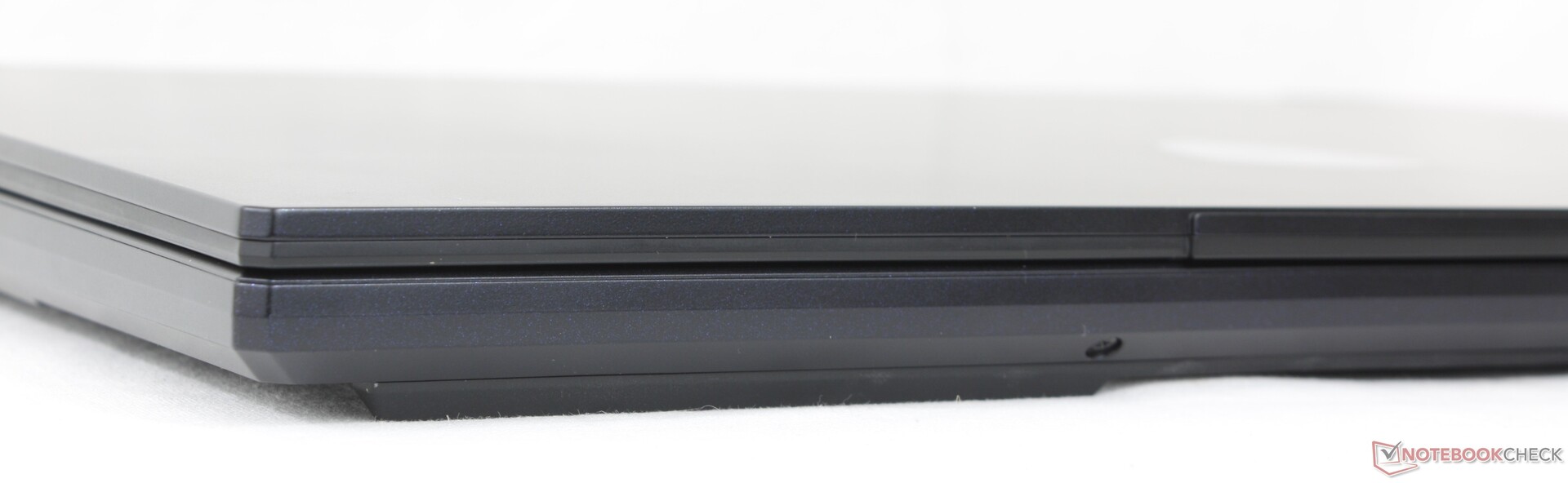 A merevség jó, de nem a legjobb, csak valamivel több vetemedéssel és nyikorgással az aljzat mentén, ha összehasonlítjuk a Blade 18 vagy a Lenovo Legion 9 18. Különösen a zsanérok elég kicsik egy ilyen nagy, 18 hüvelykes képernyőhöz képest, ezért azt javasoljuk, hogy óvatosnak kell lenni, ha túl erőteljesen nyitjuk a fedelet. Bár más 18 hüvelykes alternatívák hangosabbak lehetnek, ezek is általában vastagabbak és nehezebbek, mint az MSI.