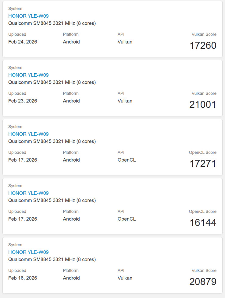 A beépített Adreno 829 GPU-val elért teljesítmény azonban elmarad a várakozásoktól. Bár egyelőre korlátozott adathalmazról van szó, az eddig elért OpenCL és Vulkan pontszámok az alsó határán vannak annak, amit a csúcskategóriás chipsetektől, például a Dimensity 9400+, Snapdragon 8 Elite vagy a Snapdragon 8 Elite Gen 5. Kérjük, tekintse meg korábbi cikkünket a MagicPad 4 további részleteiért.
