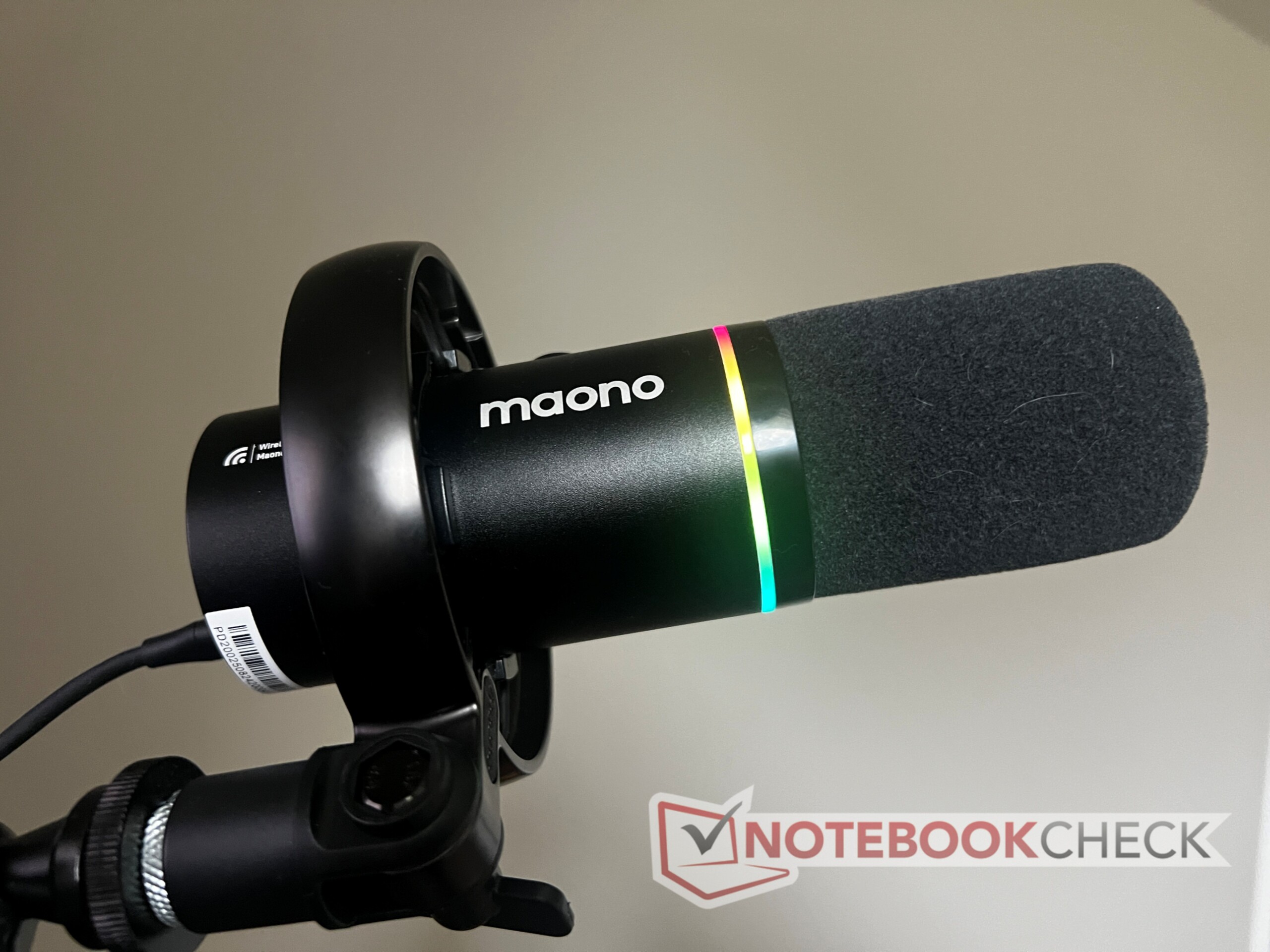 A mikrofon alján található az XLR és az USB-C bemenet, valamint a bekapcsológomb (amely a LED-gyűrű különböző színekben történő váltására is használható) és a 3,5 mm-es hangkimenet a fejhallgatóhoz. Az USB-C port a mikrofon akkumulátorának töltésére is szolgál, amelyet a Maono akár 60 órára is becsül. A kezdetleges tesztelés alapján ez az akkumulátor-állítás meglehetősen pontosnak tűnik, a használat függvényében. Az RGB bekapcsolása felére csökkenti az akkumulátor élettartamát.