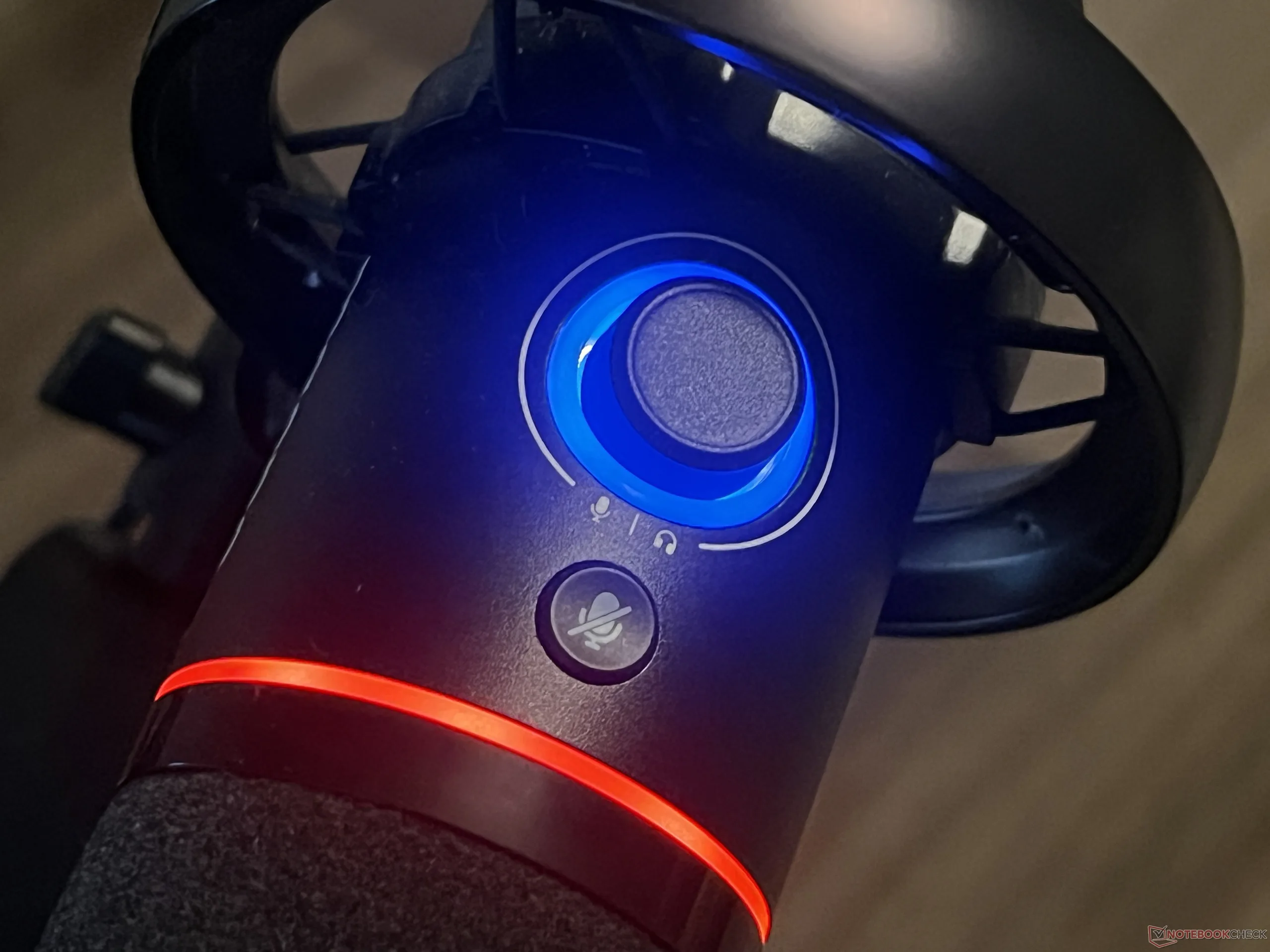 A mikrofon fő testén egyetlen gomb található, amely az erősítést (a mikrofonba menő hangerőt) vagy a fejhallgató hangerejét (a mikrofon testének alján található 3,5 mm-es csatlakozón keresztül kimenő hangerőt) szabályozza. Ezt a fényt egy LED-gyűrű veszi körül, amely homályos képet ad arról, hogy hol van beállítva az erősítés vagy a hangerő szintje, bár nem túl pontos. A fedél a hangerő csökkenésével halványodik, és a hangerő növelésével világosodik, de nehéz megmondani, hogy pontosan hány százalékos vagy milyen szinten van a hangerő. A gomb jó tapintású visszajelzéssel rendelkezik, minden szinten kattog. Referenciaként a 0%-tól 100%-ig pontosan 20 kattintás van, így a kattintások számolásával kell a jobb, pontosabb képet kapni. Egy pontosabb vizuális jelzés jobb lehetőség lenne a jövőbeli felülvizsgálatokban, hogy a felhasználók egy pillantással tudják, hogy milyen erősítés van beállítva.