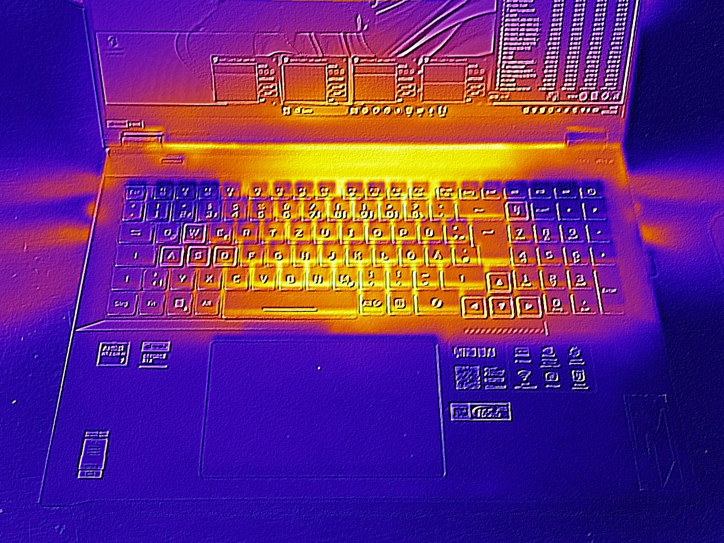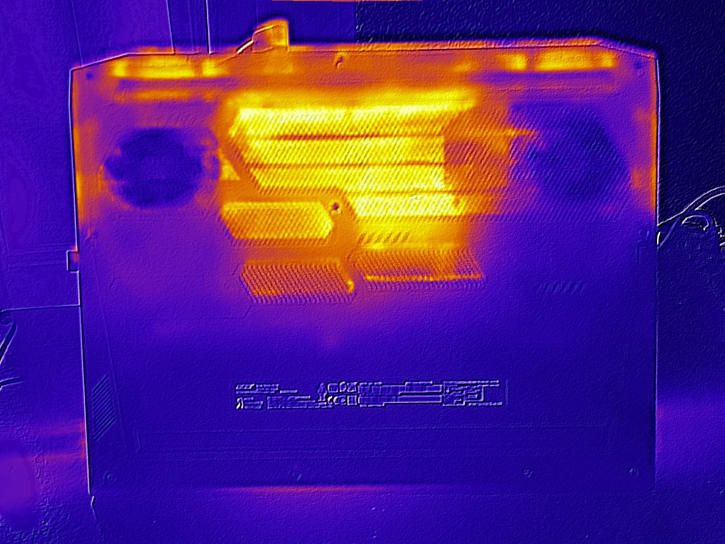 (±) A felső oldalon a maximális hőmérséklet 44 °C / 111 F, összehasonlítva a 40.4 °C / 105 F átlagával , 21.2 és 68.8 °C között a Gaming osztálynál.
